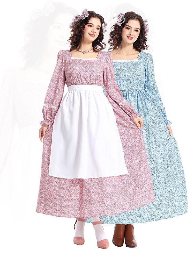 レディース ワンピース セットアップ ロング マキシ 長袖 ペザントスリーブ スクエアネック フレア Aライン フェミニン レース ハイウエスト 異国風 かわいい 大人可愛い きれいめ カジュアル 上品 レトロ エキゾチック ガーリー エレガント ラブリー キュート クラシカル アメリカン カントリー ロマンティック ナチュラル 花柄 フラワー 総柄 秋 ハロウィン パーティー イベント コスプレ 清楚 コスチューム 衣装 仮装 XS S M L XL 2XL 小さいサイズ 大きいサイズ ピンク ブルー