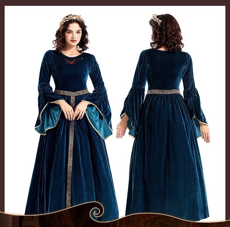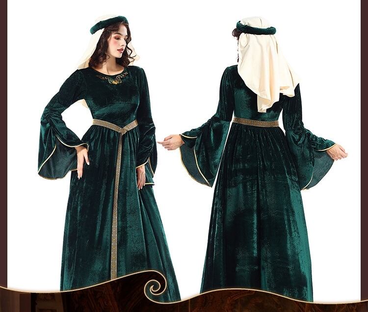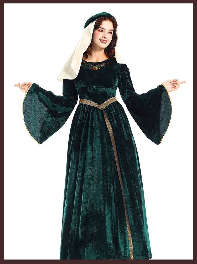 レディース ワンピース ドレス ヘッドドレス ロング マキシ 長袖 ベルスリーブ ラウンドネック フレア Aライン フェミニン ウエストマーク ハイウエスト 異国風 きれいめ シンプル 上品 おしゃれ エキゾチック 個性的 クール エレガント 主役級 存在感 プリンセス ラグジュアリー クラシカル ロマンティック シック 無地 秋 冬 ハロウィン パーティー イベント 発表会 コスプレ スタイルアップ コスチューム 衣装 仮装 ヨーロッパ風 中東風 貴族 王女 S M L XL ブルー レッド グリーン