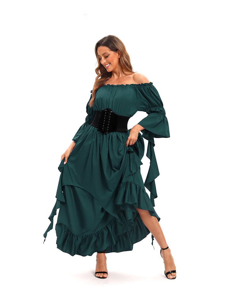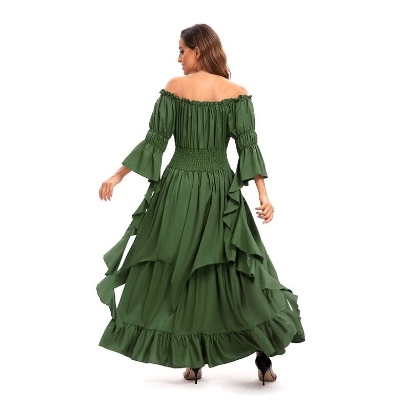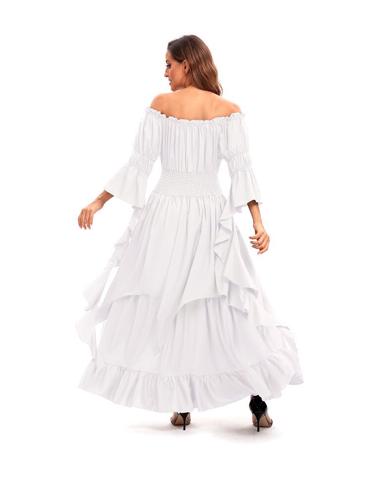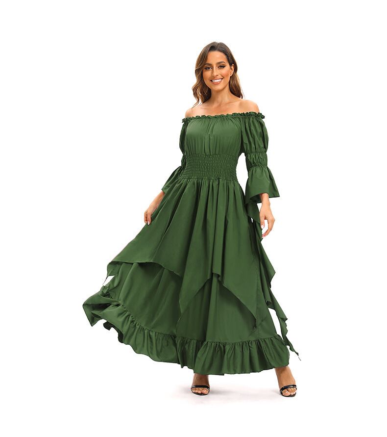 レディース ワンピース ドレス ペザントドレス ロング マキシ 7分袖 ベルスリーブ オフショルダー フレア Aライン フェミニン ハイウエスト 異国風 ギャザー フラウンス シャーリング ストレッチ 伸縮性 かわいい 大人可愛い 上品 おしゃれ レトロ エキゾチック 個性的 エレガント アメリカン ロマンティック シック 無地 春秋 ハロウィン お出かけ 普段使い 清楚 肌見せ コスチューム 衣装 中世 ヨーロッパ風 S M L XL 2XL 3XL ホワイト ブラック レッド グリーン ダークグリーン
