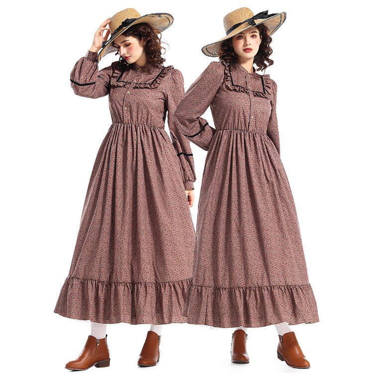 レディース ワンピース セットアップ プレーリードレス ロング マキシ 長袖 ペザントスリーブ スタンドカラー バンドカラー フレア Aライン フェミニン フリル ハイウエスト 異国風 ギャザー フラウンス かわいい 大人可愛い きれいめ シンプル 上品 おしゃれ レトロ ラフ エレガント 抜け感 クラシカル アメリカン カントリー ロマンティック ナチュラル シック 牧歌的 花柄 フラワー 総柄 休日 コスプレ 普段使い 清楚 コスチューム 衣装 仮装 XS S M L XL 2XL くすみカラー