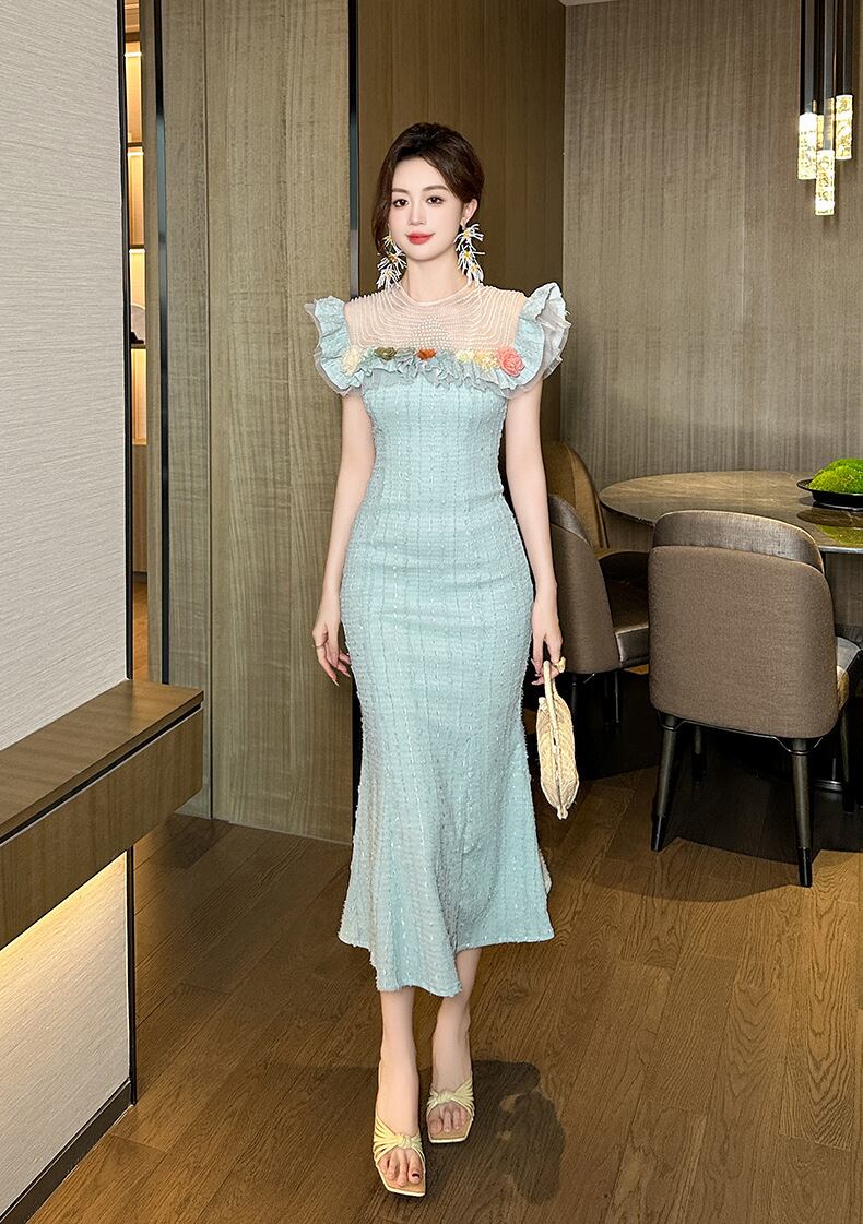 レディース スカート ワンピース ドレス フレアスカート マーメイドスカート ロングスカート 膝下 ロング マキシ ノースリーブ ラウンドネック 襟なし セミフレア タイト スリム マーメイド フリル ファスナー ハイウエスト 透け感 シースルー かわいい 大人可愛い 上品 おしゃれ 主役級 存在感 キュート プリンセス セクシー 色気 フラワー 春 夏 秋 冬 オールシーズン ロングシーズン デート パーティー イベント 休日 ホテル 発表会 コンサート モテ スタイルアップ 肌見せ 衣装 S グリーン
