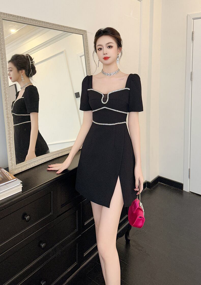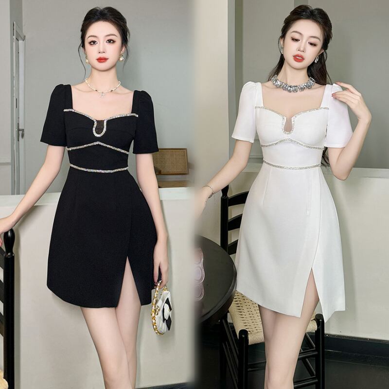 レディース ワンピース ドレス ミニ 半袖 スクエアネック Aライン ウエストマーク スリット ファスナー ハイウエスト かわいい きれいめ シンプル カジュアル 上品 おしゃれ こなれ感 クール エレガント モダン 都会的 ラグジュアリー セクシー 色気 シック ノーブル 華やか 無地 春 夏 二次会 お出かけ パーティー レストラン 女子会 ホテル キャバ ラウンジ スタイルアップ 肌見せ S M L XL 白 ホワイト 黒 ブラック