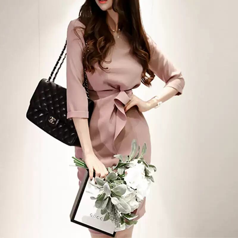 レディース ワンピース ドレス ミニ 膝上 7分袖 ラウンドネック スリム 細身 ドレープ フェミニン アワーグラスライン バックスリット ハイウエスト かわいい 大人可愛い きれいめ シンプル 上品 おしゃれ エレガント 都会的 セクシー 色気 シック 無地 春 秋 二次会 披露宴 デート お出かけ パーティー レストラン ホテル 合コン コンパ キャバ ラウンジ 脚長 普段使い モテ スタイルアップ S M L XL ピンク 春カラー