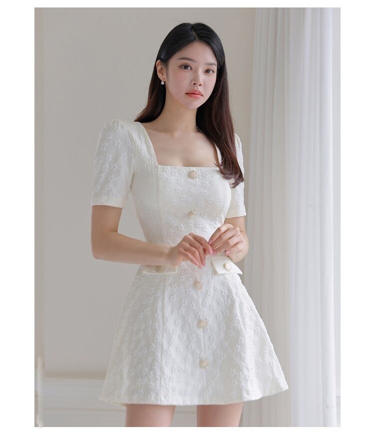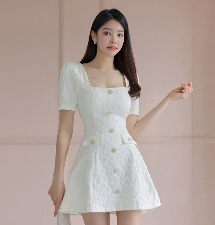 レディース ワンピース ミニ 半袖 スクエアネック タイト スリム 細身 Aライン フェミニン ファスナー ボタン かわいい きれいめ シンプル カジュアル 上品 おしゃれ ガーリー エレガント ラブリー キュート 都会的 ロマンティック セクシー 色気 シック ノーブル 華やか 花柄 フラワー 春 夏 デート お出かけ パーティー ホテル クラブ キャバ ラウンジ 韓国 オルチャン 普段使い 肌見せ S M L XL 白 ホワイト