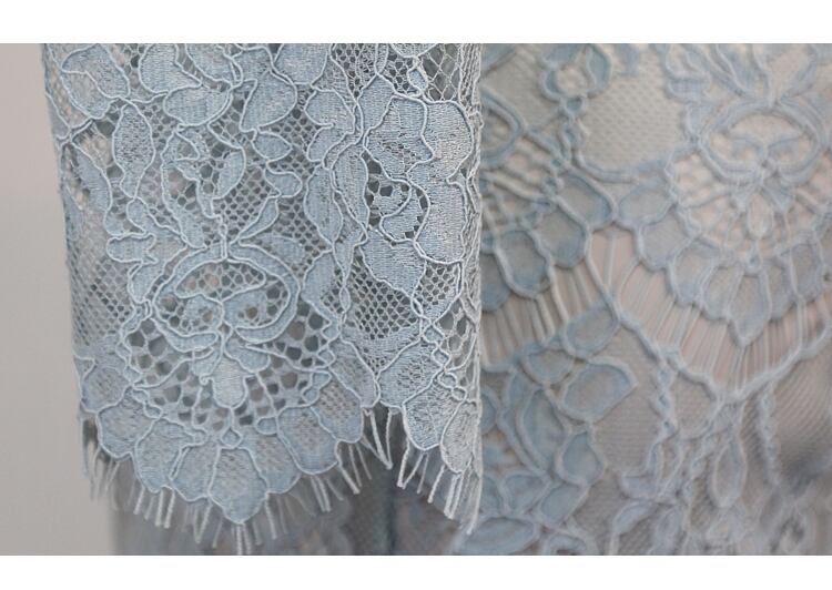 レディース ワンピース ドレス 膝丈 ミディ 7分袖 モックネック ボトルネック イリュージョンネック タイト スリム 細身 フェミニン ボディコンシャス 透け感 シースルー 総レース シアー かわいい きれいめ シンプル 上品 おしゃれ エキゾチック エレガント 都会的 ラグジュアリー ロマンティック セクシー 色気 シック 華やか 花柄 フラワー 春 夏 二次会 同窓会 パーティー ホテル 合コン コンパ キャバ ラウンジ 肌見せ S M L XL ライトブルー