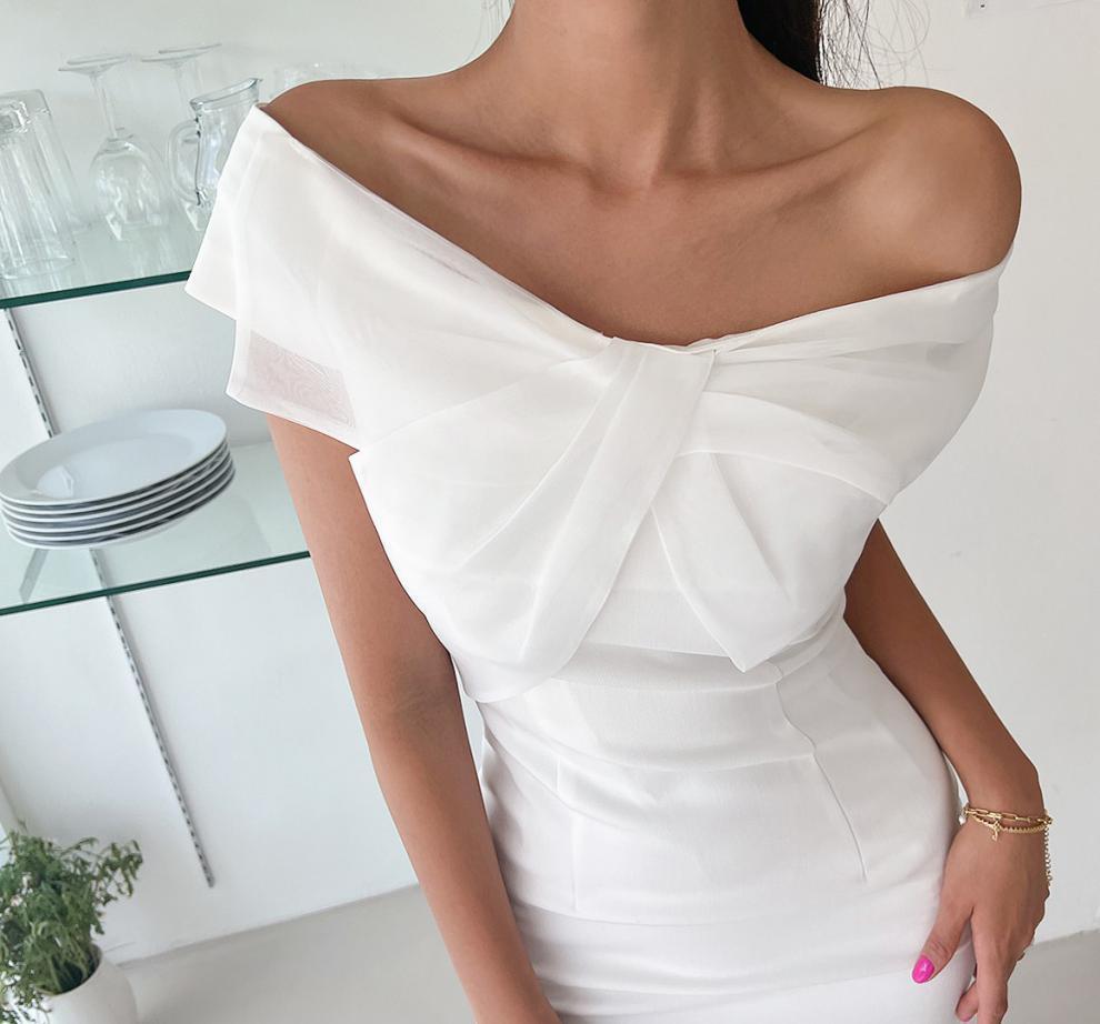レディース スカート ワンピース ショートスカート タイトスカート ミニスカート ミニ ショート 膝上 オフショルダー ワンショルダー 襟なし タイト スリム 細身 ファスナー 透け感 かわいい 大人可愛い きれいめ シンプル 上品 おしゃれ こなれ感 主役級 キュート ナチュラル セクシー 色気 爽やか 無地 春 夏 デート お出かけ パーティー イベント リゾート 旅行 海 休日 バカンス ホテル 美脚 脚長 モテ 清楚 スタイルアップ 肌見せ 涼しい S M L XL 白 ホワイト ベーシックカラー