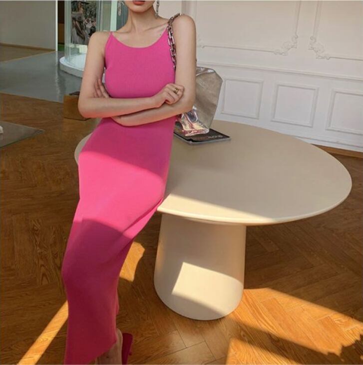 レディース スカート ワンピース アウター ロングスカート 膝下 ロング 袖なし ノースリーブ キャミソール Uネック ラウンドネック 襟なし タイト スリム 細身 ストレート 大人可愛い きれいめ シンプル カジュアル 上品 おしゃれ かっこいい こなれ感 クール キュート セクシー 色気 無地 春 夏 秋 デート お出かけ パーティー イベント リゾート 海 休日 バカンス コーデ 楽ちん モテ スタイルアップ 肌見せ コスチューム 衣装 涼しい S M L 黒 ブラック ピンク ブルー 大人カラー