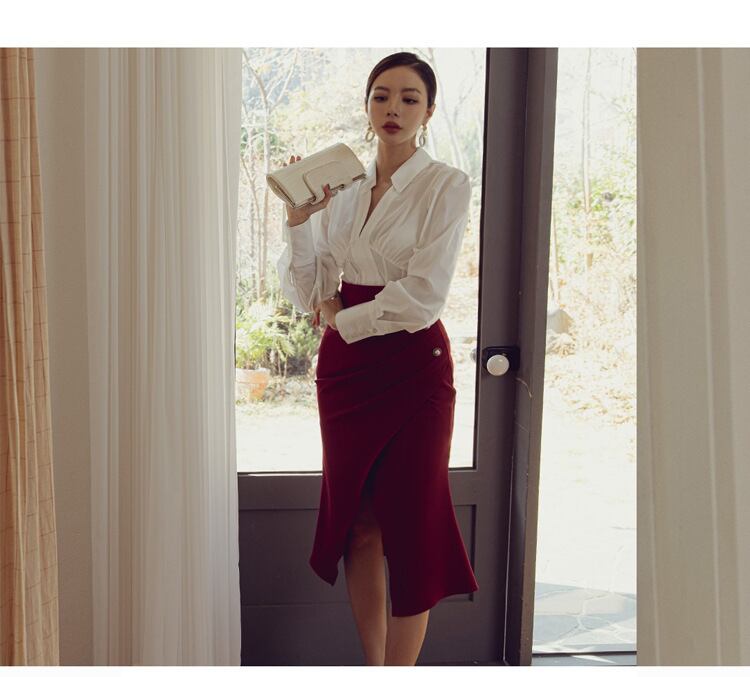 レディース スカート トップス ボトムス シャツ ブラウス セットアップ ワイシャツ 膝丈 ミモレ ミディ 長袖 Vネック 襟付き タイト スリム 細身 マーメイド ラップ フェミニン ハイウエスト コンサバ 大人可愛い きれいめ シンプル 上品 おしゃれ エキゾチック エレガント かっちり 都会的 ラグジュアリー セクシー 色気 シック ノーブル 華やか 無地 春 秋 お出かけ パーティー コーデ 普段使い スタイルアップ S M L XL ホワイト レッド
