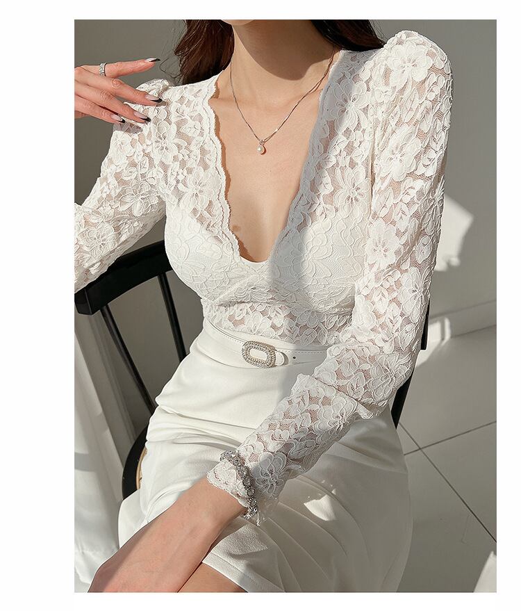 レディース トップス 長袖 Vネック スリム 細身 フェミニン 透け感 シースルー 総レース シアー かわいい 大人可愛い きれいめ シンプル カジュアル 上品 おしゃれ ガーリー 個性的 エレガント 抜け感 キュート 都会的 ロマンティック セクシー 色気 シック 華やか 花柄 フラワー 春 夏 デート お出かけ 休日 普段使い 着回し 肌見せ 涼しい 通気性 S M L ホワイト ブラック アプリコット