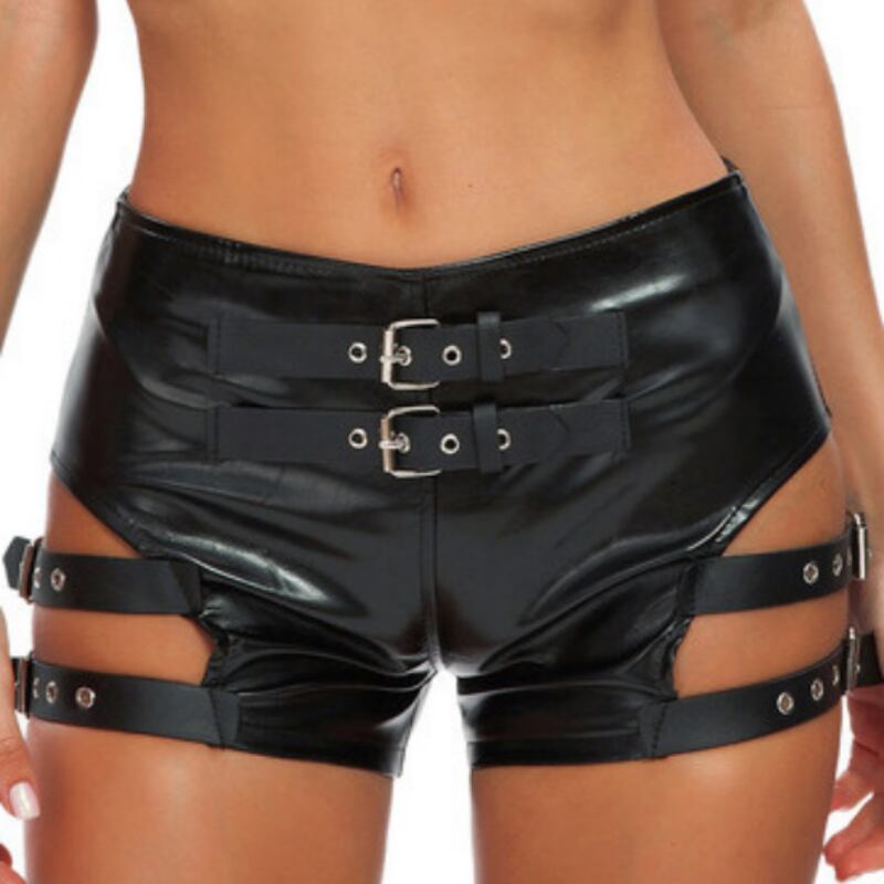 サイドのガーターデザインと艶やかなフェイクレザーが魅力的なショートパンツです!タイトなシルエットがスタイルを引き立て、セクシーな印象を与えます。春夏のイベントやライブ、そしてコスプレにもぴったりな一着です。エキゾチックで個性的なデザインがおしゃれで、周りの視線を集めること間違いなし!