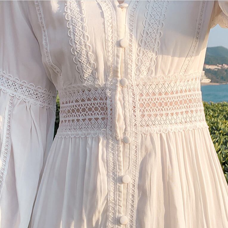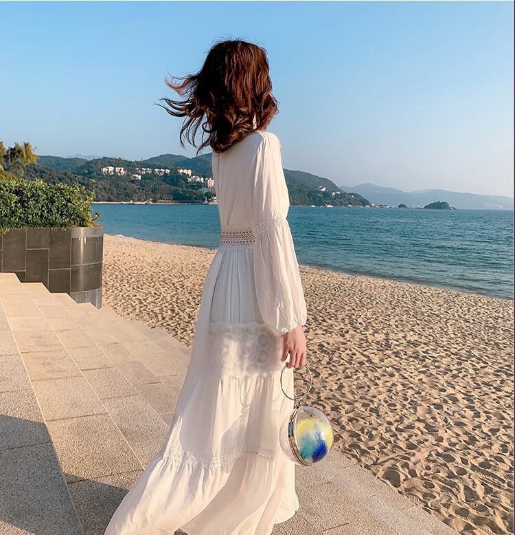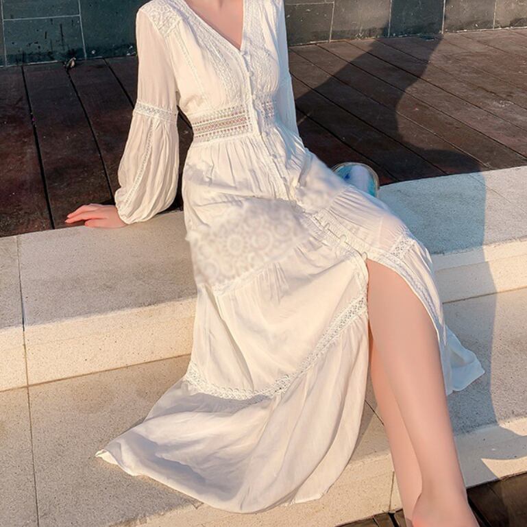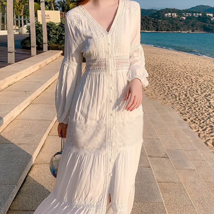 レディース ワンピース ロングスカート レーススカート ロング アンクル丈 長袖 Vネック 襟なし フレア スリム Aライン ハイウエスト 透け感 刺繡 かわいい 大人可愛い きれいめ シンプル カジュアル 上品 おしゃれ ラフ キュート ナチュラル セクシー 色気 爽やか 無地 春 夏 デート お出かけ イベント リゾート 旅行 海 プール ビーチ 休日 バカンス ショッピング コーデ 楽ちん 体型カバー 脚長 モテ 清楚 スタイルアップ 肌見せ 涼しい S M L XL 白 ホワイト ベーシックカラー