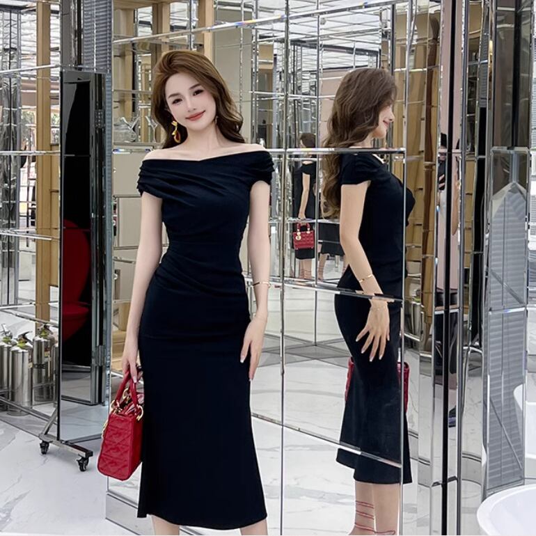 華やかでスタイリッシュなワンピースです!セミフレアデザインが、優雅な雰囲気を演出し、どんなシーンでも活躍します。オフショルダーとハイウエストの組み合わせが、セクシーさを引き立てつつ、清楚で上品な印象を与えます。シンプルな無地デザインは、ビジネスシーンやデート、お出かけ、パーティーなど多彩なシチュエーションで活躍します!