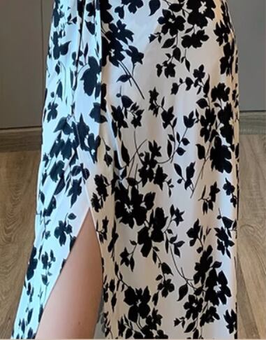 大人の女性にぴったりのエレガントなワンピースです!スリムなAラインとハイウエストのデザインが、スタイルアップを実現し、脚長効果も抜群です。Vネックがデコルテを美しく見せてくれ、さらにウエストリボンで可愛らしいウエストマークを加えています。スリット入りなので、動きやすさも兼ね備えたアイテムです。花柄の総柄がおしゃれさを引き立て、春夏のデートやお出かけ、旅行など様々なシーンで大活躍します!