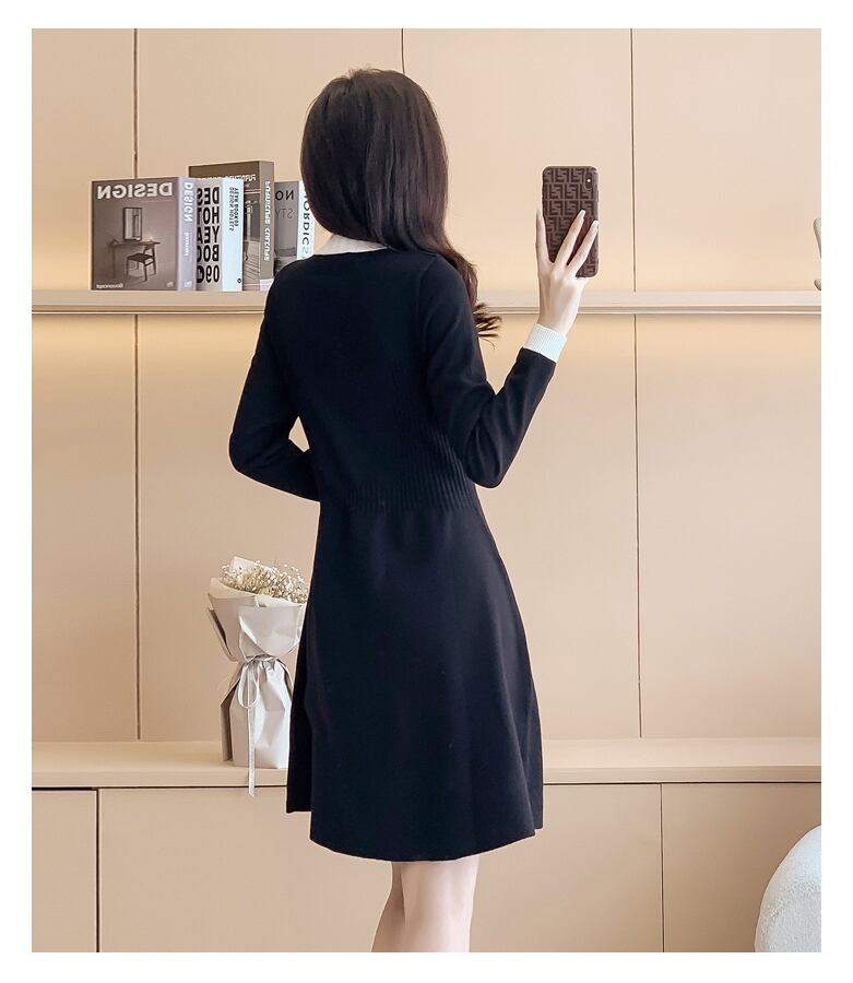 レディース ワンピース ニットワンピ セータードレス ミニ 膝上 長袖 クルーネック Aライン フェミニン フィット&フレア ハイウエスト バイカラー リブニット 伸縮性 パール かわいい 大人可愛い きれいめ シンプル カジュアル 上品 おしゃれ こなれ感 ガーリー エレガント 抜け感 キュート 都会的 ロマンティック シック ノーブル 華やか 無地 春 秋 デート お出かけ 楽ちん 普段使い モテ 清楚 定番 S M L XL 2XL 3XL 大きいサイズ ビッグ プラスサイズ 黒 ブラック