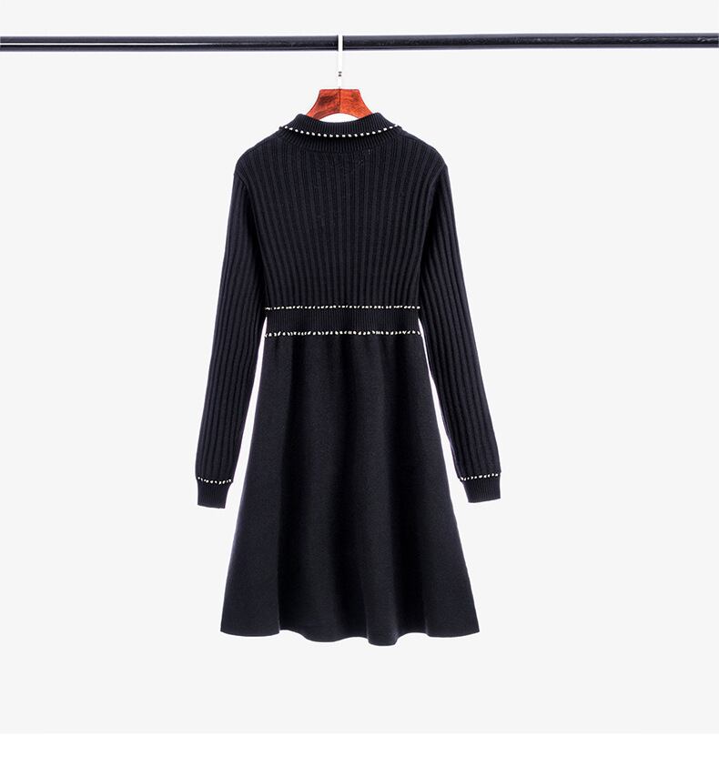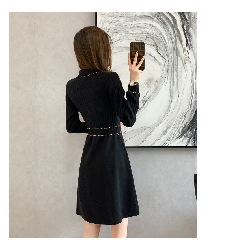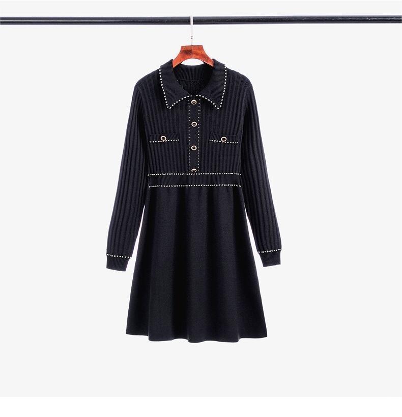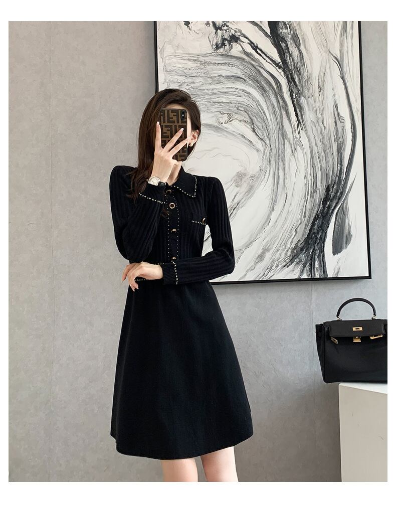 レディース ワンピース ニットワンピ セータードレス ミニ 長袖 襟付き 角襟 ステンカラー スタンダードカラー レギュラーカラー Aライン フィット&フレア ハイウエスト ボタン バイカラー リブニット 伸縮性 かわいい きれいめ シンプル カジュアル 上品 おしゃれ こなれ感 エレガント 抜け感 キュート 都会的 ベーシック シック 無地 春 秋 デート お出かけ 楽ちん 普段使い 清楚 スタイルアップ S M L XL 黒 ブラック