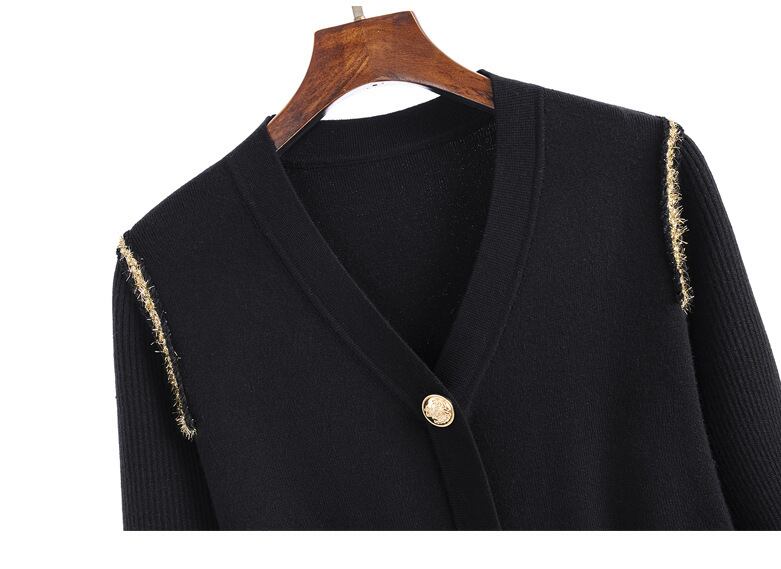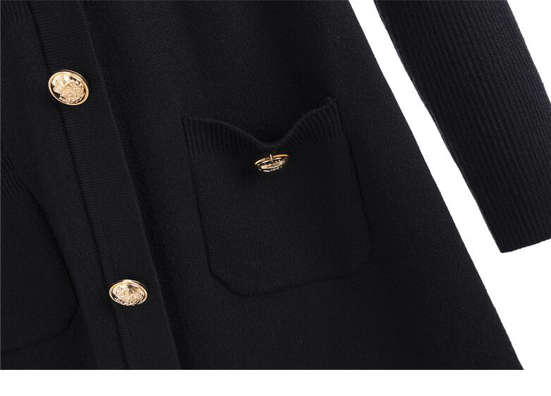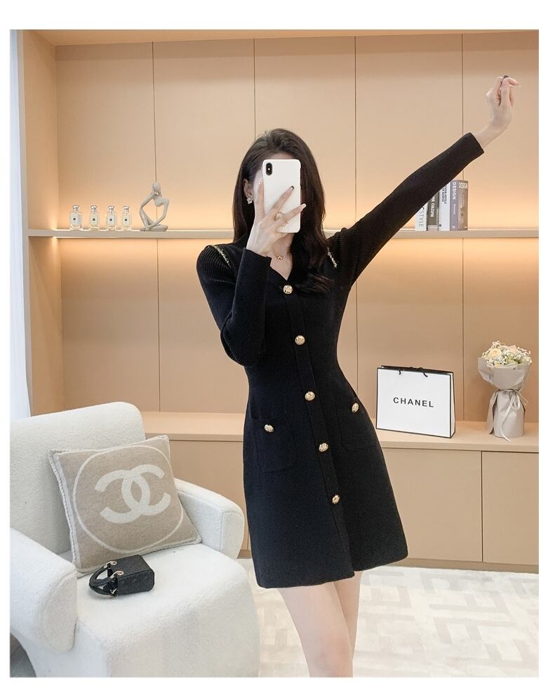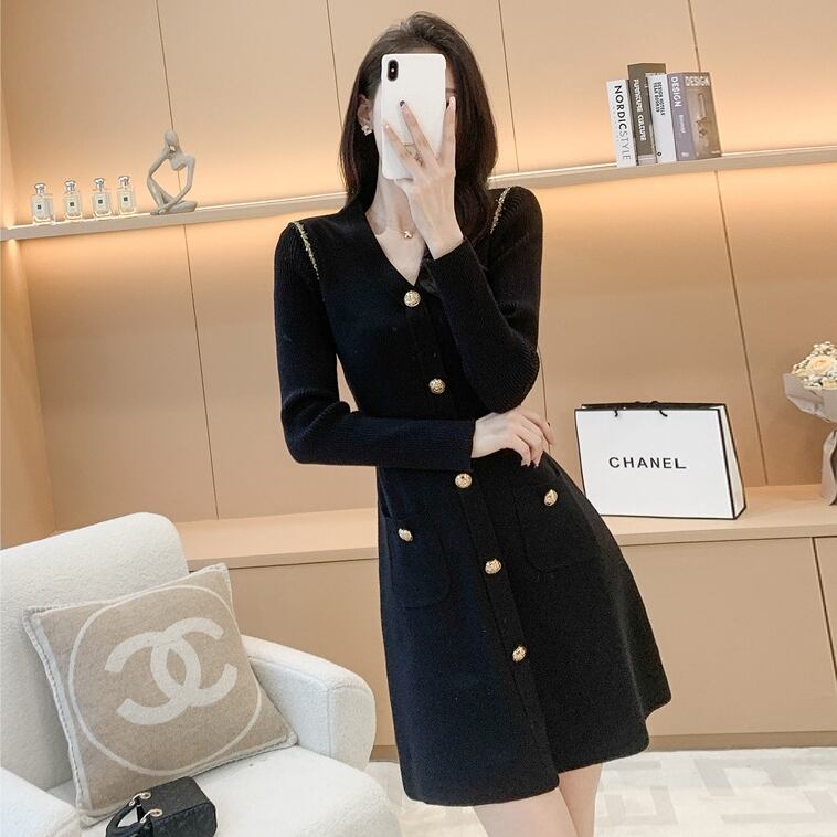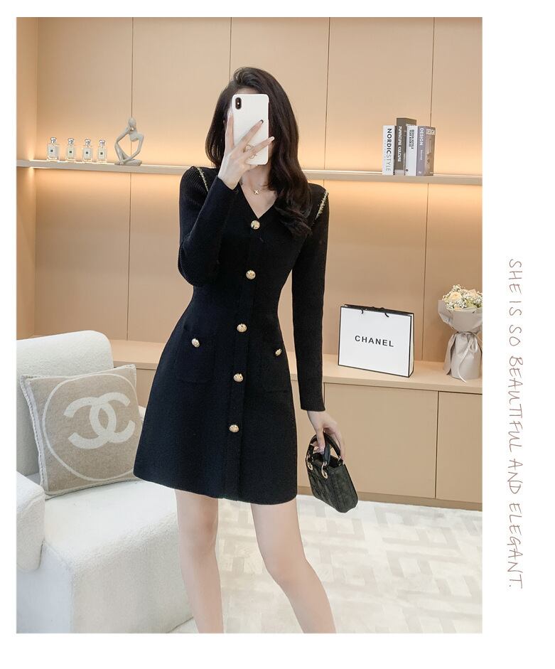 華やかなゴールドのボタンがポイントのこのニットワンピースは、エレガントさと可愛らしさを兼ね備えた一着です。VネックデザインとセミフレアのAラインが女性らしいシルエットを作り出し、ストレッチ性のあるリブニット素材が体に心地よくフィットします。デートや女子会、お出かけなど様々なシーンに最適で、シックで都会的な雰囲気を演出します。シンプルながらもおしゃれなこなれ感が魅力の一品です。