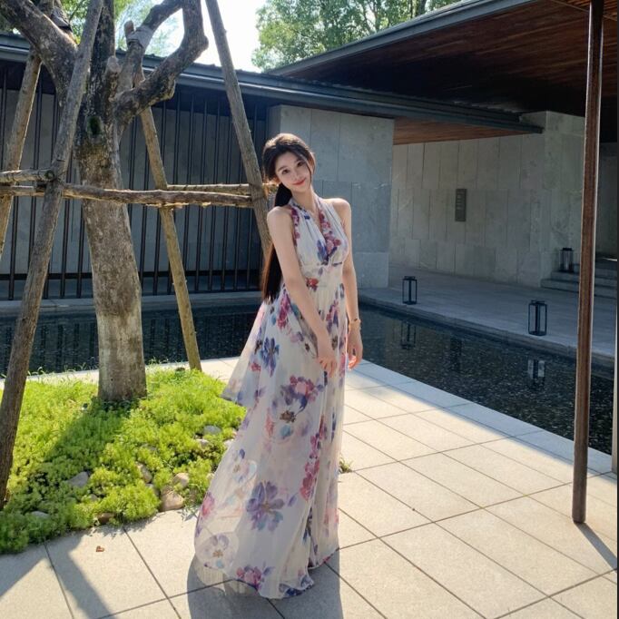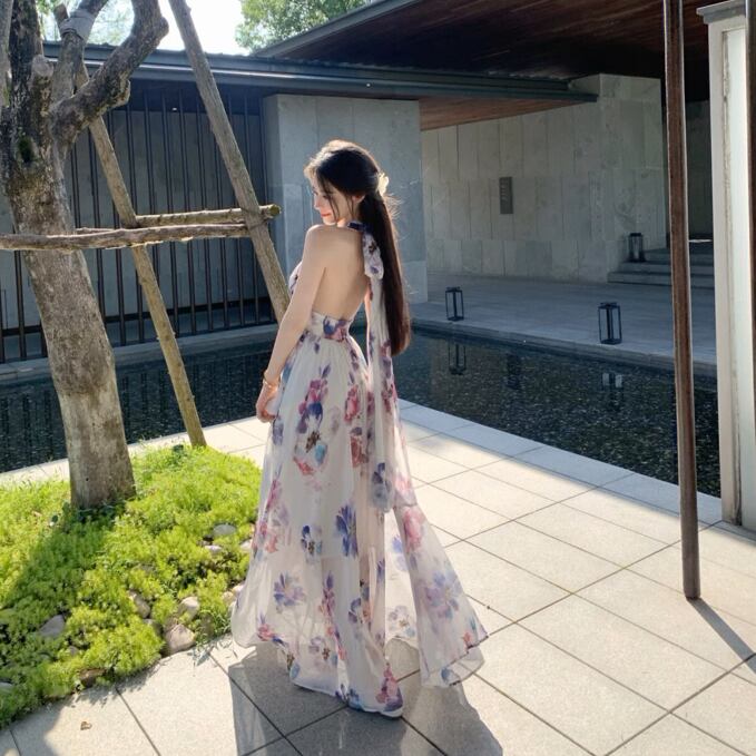 レディース ワンピース フレア ロングスカート 膝下 ロング アンクル丈 丈長 袖なし ホルターネック フレア セミフレア スリム Aライン 背中開き ウエストマーク ウエストリボン ハイウエスト かわいい 大人可愛い きれいめ シンプル カジュアル 上品 おしゃれ 主役級 存在感 キュート ナチュラル セクシー 色気 花柄 春 夏 デート お出かけ お泊まり パーティー イベント リゾート 旅行 海 ビーチ 休日 バカンス モテ 清楚 スタイルアップ 肌見せ 涼しい S M L 白 ホワイト ピンク