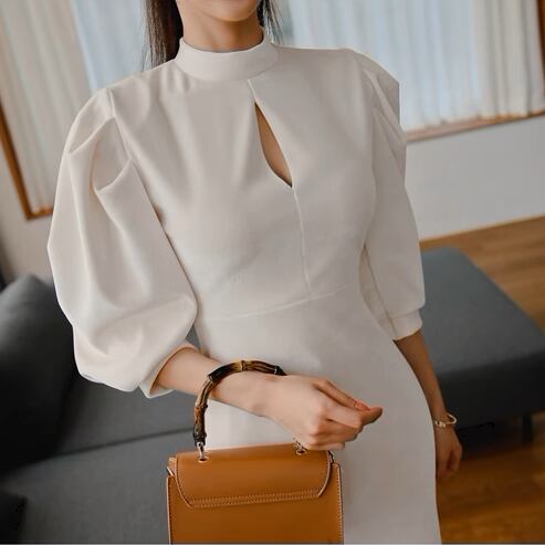 レディース スカート ワンピース タイトスカート 膝丈 膝下 ミモレ 7分袖 ラウンドネック ハイネック タイト スリム 細身 ウエストマーク スリット ハイウエスト 大人可愛い きれいめ シンプル 上品 おしゃれ かっこいい こなれ感 エレガント 主役級 ナチュラル 色気 無地 春 夏 秋 冬 オールシーズン ロングシーズン お出かけ パーティー イベント ホテル 発表会 コンサート コーデ 美脚 脚長 スタイルアップ コスチューム S M L XL 白 ホワイト クリーム ベーシックカラー 大人カラー