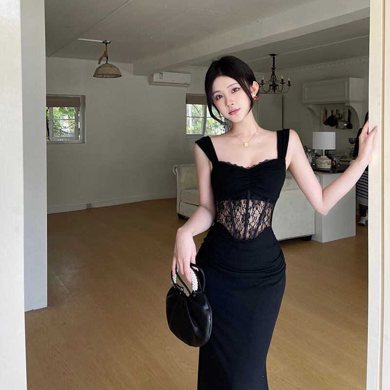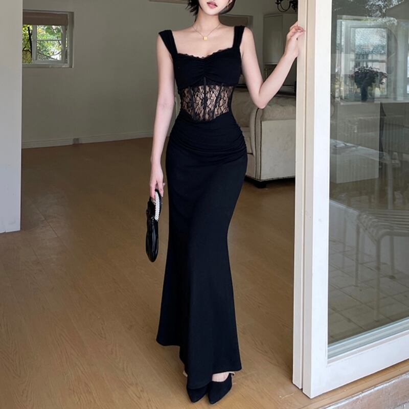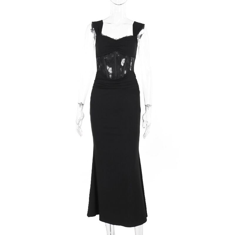 レディース ワンピース ドレス シースドレス コルセットドレス ロング マキシ 袖なし ノースリーブ スクエアネック タイト スリム 細身 スマート フェミニン スレンダー レース ハイウエスト 透け感 シースルー 切り替えデザイン シアー 大人可愛い シンプル 上品 おしゃれ エキゾチック クール エレガント 抜け感 ゴシック 都会的 ラグジュアリー セクシー 色気 シック ノーブル 華やか ゴス 無地 花柄 春 夏 お出かけ パーティー 普段使い スタイルアップ 肌見せ S M L 黒 ブラック