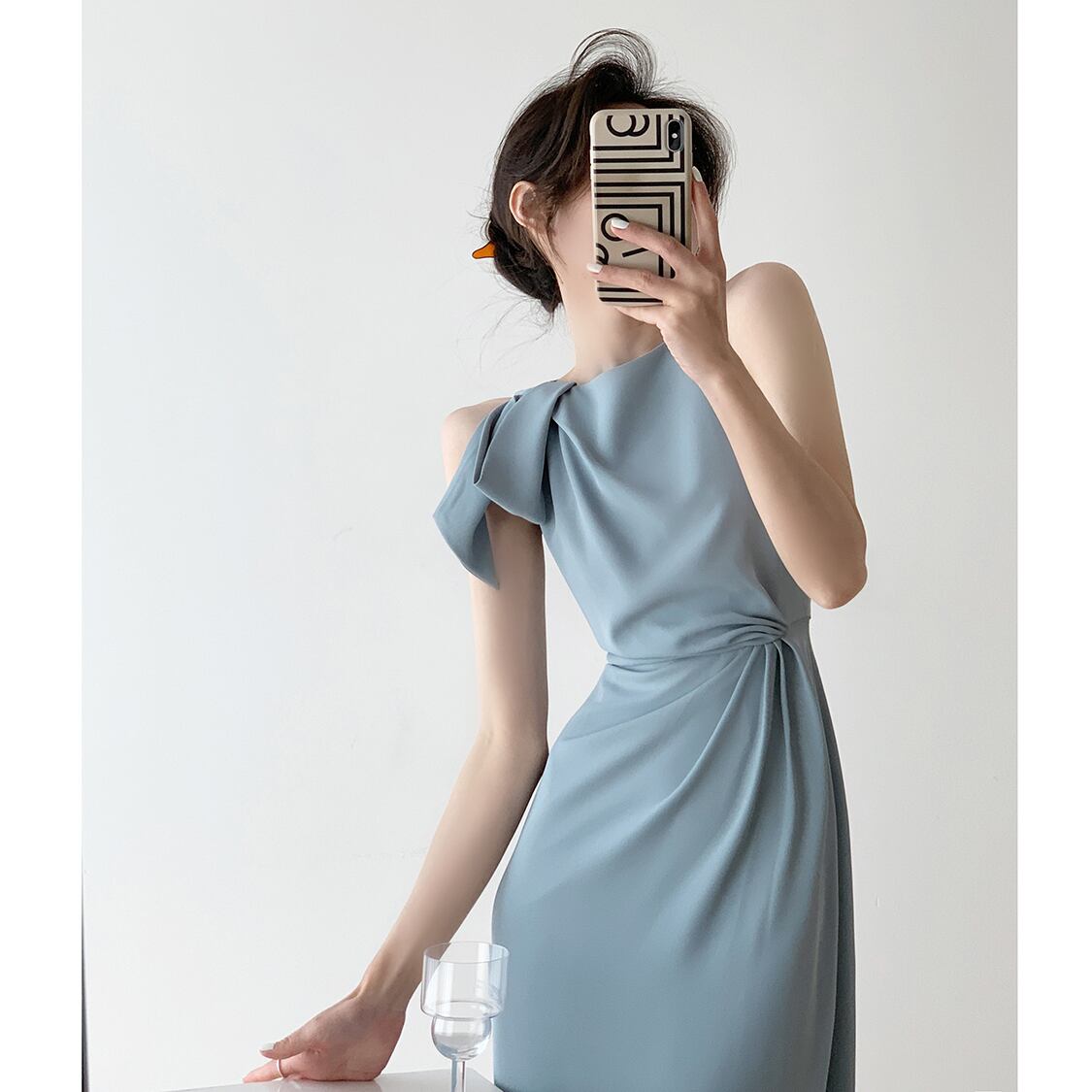 膝丈のミモレタイプで、涼しげな印象を与えつつ、タイトなスリムラインが美脚を強調します。袖なしノースリーブデザインで、肌見せがセクシーさを引き立て、シンプルながらも上品でおしゃれな雰囲気を演出。エレガントでありながら、コーディネート次第でカジュアルにも決まる主役級のアイテムです!