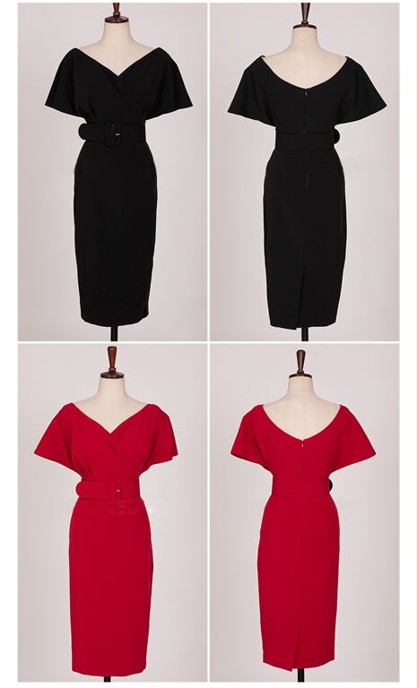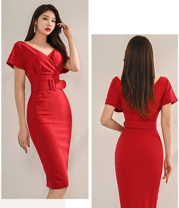 レディース ワンピース ドレス タイトスカート 膝丈 半袖 Vネック 襟なし タイト スリム 細身 ウエストマーク スリット ファスナー ハイウエスト ベルト付き きれいめ シンプル 上品 おしゃれ かっこいい クール エレガント 主役級 存在感 セクシー 色気 無地 春 夏 秋 ビジネス OL デート お出かけ パーティー イベント 休日 バカンス ホテル ショッピング 韓国 コーデ 美脚 脚長 モテ 清楚 スタイルアップ 肌見せ S M L XL 黒 ブラック レッド ベーシックカラー 大人カラー