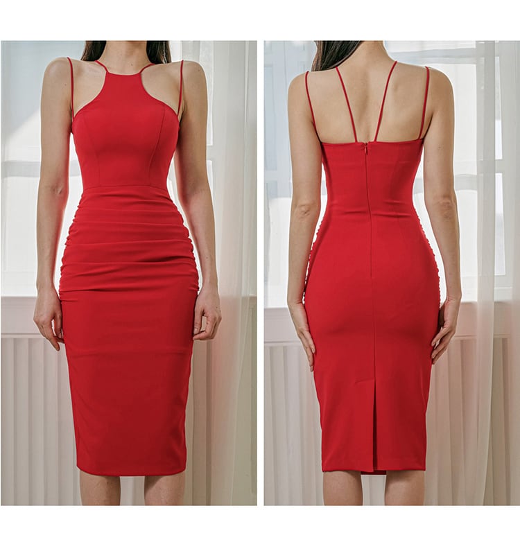 レディース ワンピース ドレス タイトスカート 膝丈 膝下 ミモレ ホルターネック 襟なし タイト スリム 細身 スリット ファスナー ハイウエスト 大人可愛い きれいめ シンプル 上品 おしゃれ かっこいい こなれ感 クール エレガント 主役級 存在感 ロマンティック セクシー 色気 華やか 無地 春 夏 秋 デート お出かけ パーティー イベント リゾート 旅行 休日 バカンス ホテル コンサート 韓国 コーデ 美脚 脚長 モテ スタイルアップ 肌見せ 涼しい S M L XL 黒 ブラック レッド