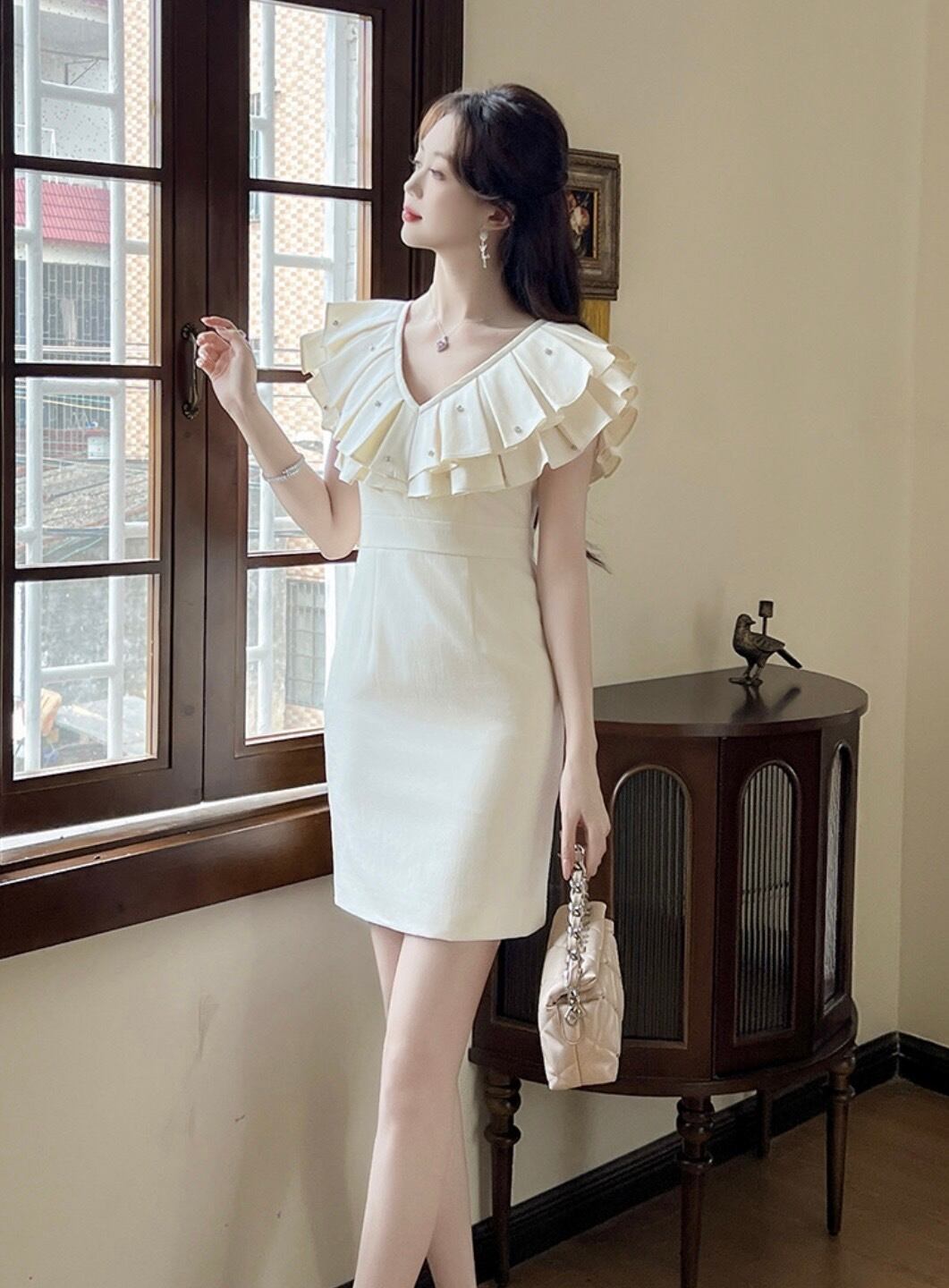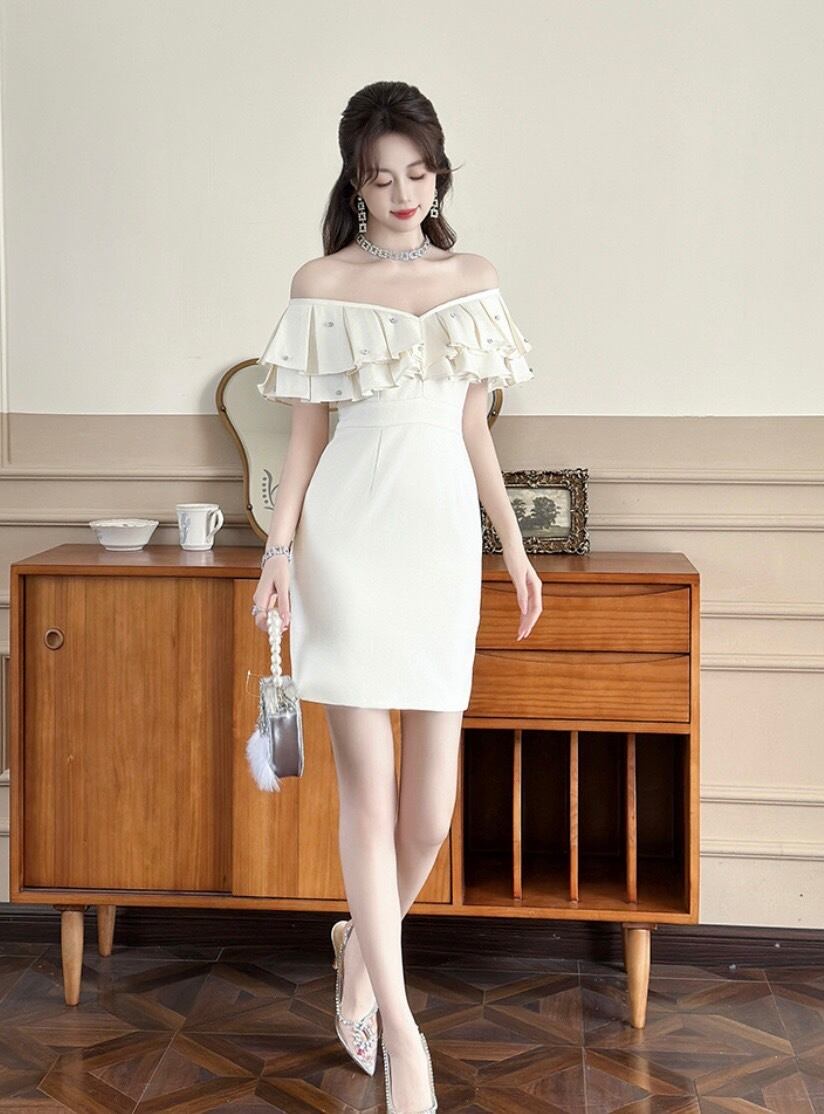 ミニ丈のデザインは、脚をスラッと見せる効果があり、Vネックとオフショルダーのスタイルが色気を引き立てます。ハイウエストのウエストマークが美しいシルエットを作り、背中開きのディテールがさらなる魅力を加えます。ブラックとベージュのシンプルで上品なカラーは、春夏のお出かけやパーティーシーンで存在感を放ちます。
