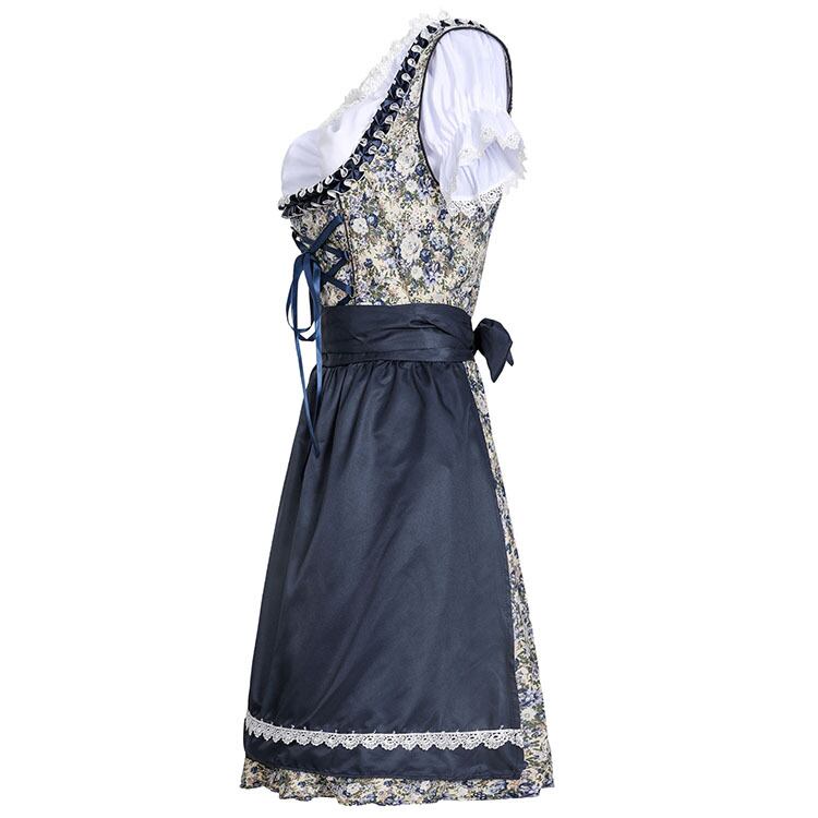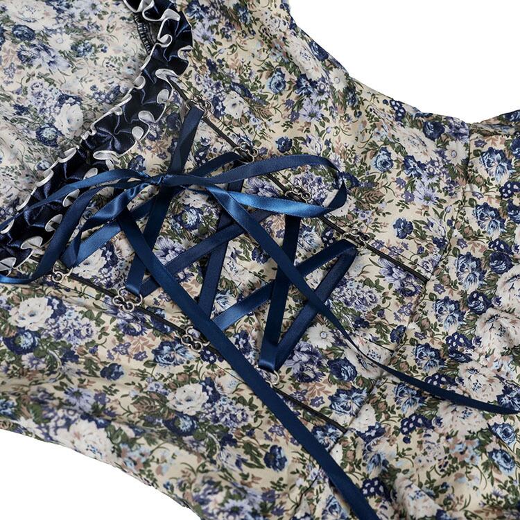 レディース ワンピース セットアップ ドレス ミニ 膝上 半袖 パフスリーブ Vネック フレア Aライン フェミニン レース フリル ハイウエスト 編み上げ レースアップ 異国風 かわいい 可愛い 上品 おしゃれ レトロ ガーリー エレガント キュート クラシカル ロマンティック 牧歌的 華やか 花柄 フラワー 春 夏 ハロウィン 文化祭 学園祭 パーティー イベント コスプレ フェス スタイルアップ コスチューム 衣装 仮装 ドイツ オクトーバーフェスト ビール祭り M L XL ネイビー マルチカラー