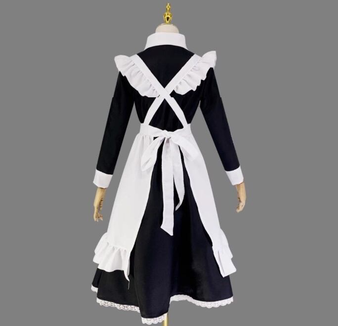 メイド服 レディース スカート ドレス 制服 ドレス ロング 長袖 襟付き ワイド Aライン レース フリル かわいい きれいめ シンプル 上品 かっこいい レトロ 個性的 存在感 ラブリー キュート 無地 春 秋 冬 結婚式 二次会 発表会 文化祭 学園祭 学生 学校 パーティー イベント 女子会 発表会 コスプレ カフェ モノトーン 演劇 舞台 お揃い プレゼント 体型カバー インスタ映え 定番 コスチューム 衣装 仮装 S M L XL 2XL 3XL 4XL 5XL 白 ホワイト 黒 ブラック