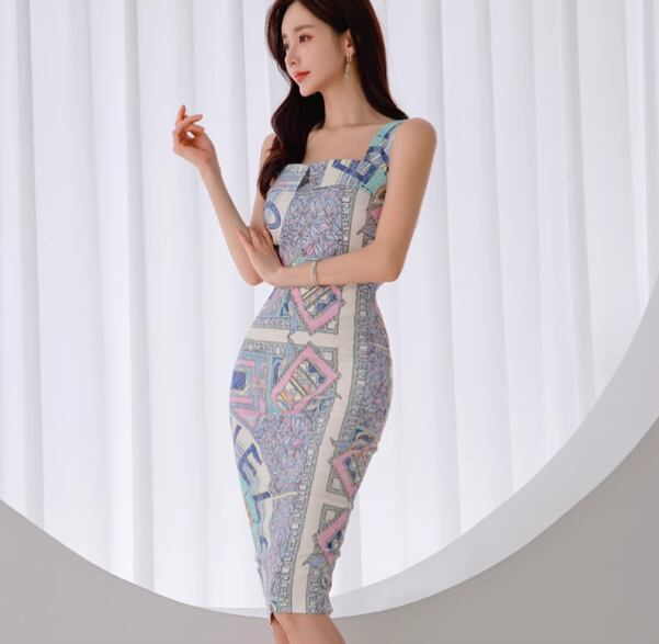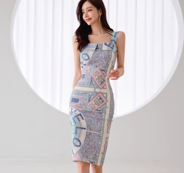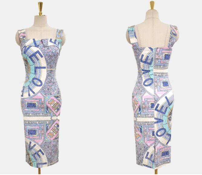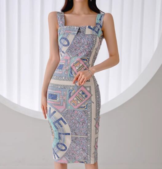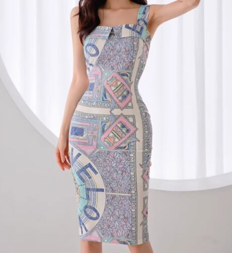 レディース ワンピース ドレス 膝丈 ミディ 袖なし ノースリーブ スクエアネック 襟なし タイト スリム 細身 背中開き スマート フェミニン Xライン バックスリット ハイウエスト 異国風 配色 かわいい 大人可愛い きれいめ 上品 おしゃれ レトロ 個性的 主役級 存在感 ラグジュアリー クラシカル ロマンティック セクシー 総柄 夏 誕生日 二次会 デート お出かけ パーティー イベント リゾート 旅行 レストラン 女子会 バカンス ライブ 合コン 韓国 オルチャン 美脚 モテ 肌見せ S M L