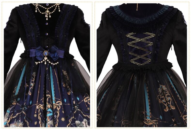 レディース ワンピース セットアップ ドレス 膝丈 ミディ 長袖 ペザントスリーブ ハイネック モックネック Aライン レース フリル リボン ハイウエスト 編み上げ レースアップ 異国風 ベロア サテン ビジュー パール オーガンジー かわいい 上品 おしゃれ レトロ ガーリー 個性的 エレガント 主役級 存在感 キュート ゴシック ロリータ クラシカル ロマンティック 華やか ゴス ゴージャス 秋 冬 コスチューム S M L XL 2XL 3XL 大きいサイズ ビッグ プラスサイズ ネイビー