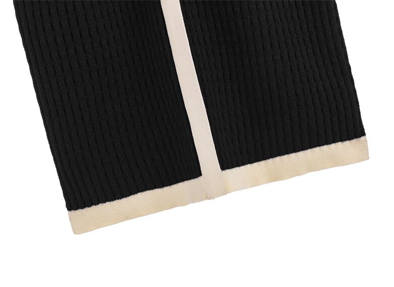 エレガントでシックな雰囲気を醸し出す、ニットワンピースのご紹介です!膝丈と長袖のデザインが、冬や秋のシーズンに最適です。ラウンドネックとスリムなシルエットが、フェミニンさを引き立てながら、スタイルアップ効果も抜群。ウエストマークのハイウエストデザインは、引き締まった印象を与え、大人可愛いスタイルを演出します。バイカラーと飾りボタンがアクセントになり、シンプルながらもおしゃれで上品な印象を与えます。