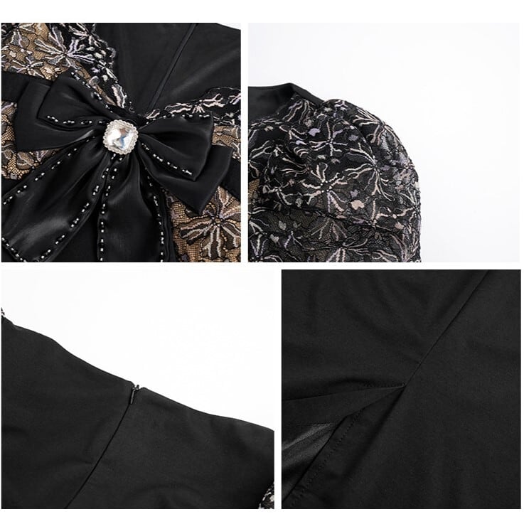 大人の魅力を引き出す、エレガントなタイトスカートです!膝丈ミモレデザインとハイウエストの組み合わせが、スタイルアップ効果を発揮し、美しいシルエットを演出します。5分袖のパフスリーブは女性らしさを際立たせ、Vネックがデコルテを優雅に見せる一着です。透け感のあるレースやリボンのディテールが、セクシーさとかわいらしさを兼ね備えた印象を与えます。デートやお出かけ、パーティー、イベント、リゾート、休日のバカンスなど、さまざまなシーンで主役級の存在感を発揮します!