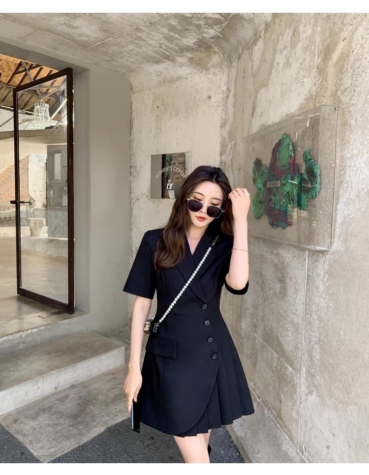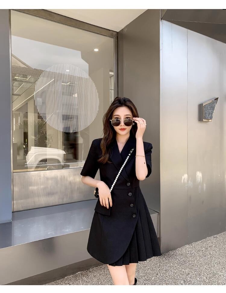 レディースの魅力を引き出す、半袖スーツ風ドレスです!プリーツスカートとAラインデザインが美しいシルエットを演出し、大人可愛い印象を与えます。カジュアルからフォーマルまで幅広いシーンで活躍し、春夏秋の様々なイベントにぴったりのアイテムです。