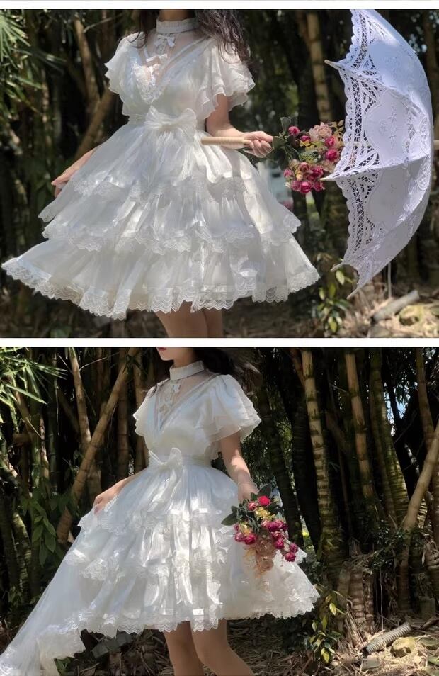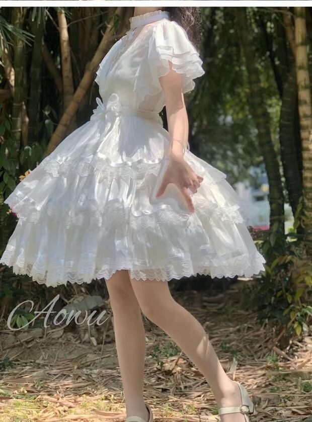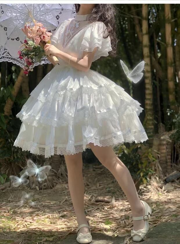 ロリータドレス レディース スカート ワンピース ドレス ドレス フレアスカート レーススカート 膝上 半袖 フリル袖 丸襟 Aライン レース チュール フリル リボン ウエストリボン ふっくら 透け感 かわいい おしゃれ ガーリー 存在感 ラブリー キュート ロリータ プリンセス 無地 春 夏 秋 ハロウィン 祭り 文化祭 学園祭 学生 学校 お出かけ パーティー イベント 休日 発表会 コンサート ライブ コスプレ 演劇 舞台 お揃い 双子 清楚 コスチューム 衣装 仮装 S M L 白 ホワイト