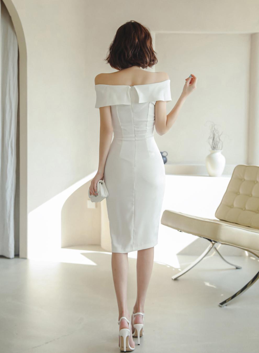 レディース ワンピース ドレス タイトスカート 膝丈 ミモレ オフショルダー タイト スリム 細身 スリット サイドスリット ファスナー ハイウエスト 大人可愛い きれいめ シンプル 上品 おしゃれ かっこいい クール エレガント 主役級 ナチュラル セクシー 色気 無地 春 夏 誕生日 デート お出かけ パーティー イベント レストラン ホテル 発表会 コンサート クラブ ラウンジ コーデ モテ 清楚 スタイルアップ 肌見せ コスチューム S M L XL 白 ホワイト ベーシックカラー 大人カラー
