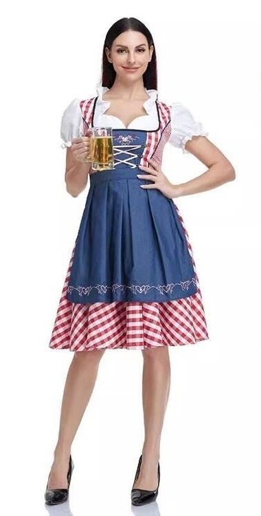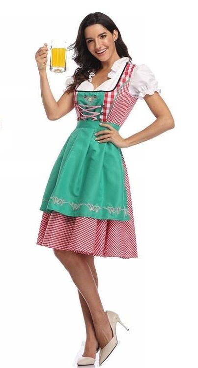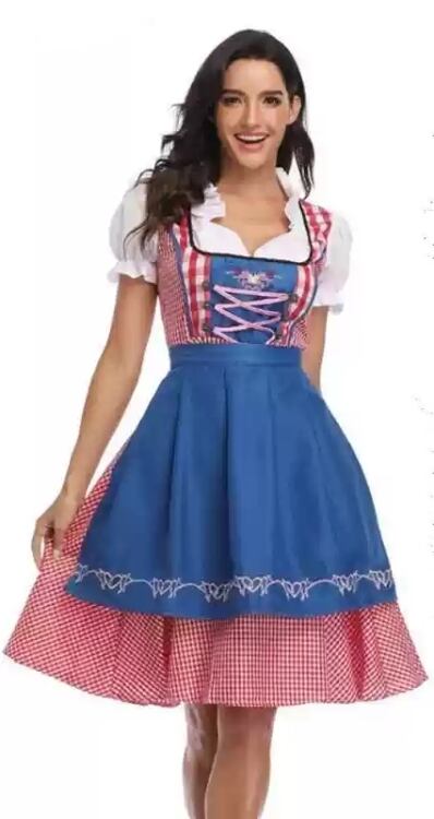 華やかでエキゾチックな魅力を持つ、ドイツのビール祭り風コスチュームです。ハロウィンや文化祭での仮装に最適なこちらのワンピースは、異国風のディテールが個性的で華やかな印象を与えます。ハイウエストとフレアAラインがスタイルアップ効果を発揮し、鮮やかなカラー展開で魅力がさらにアップします。