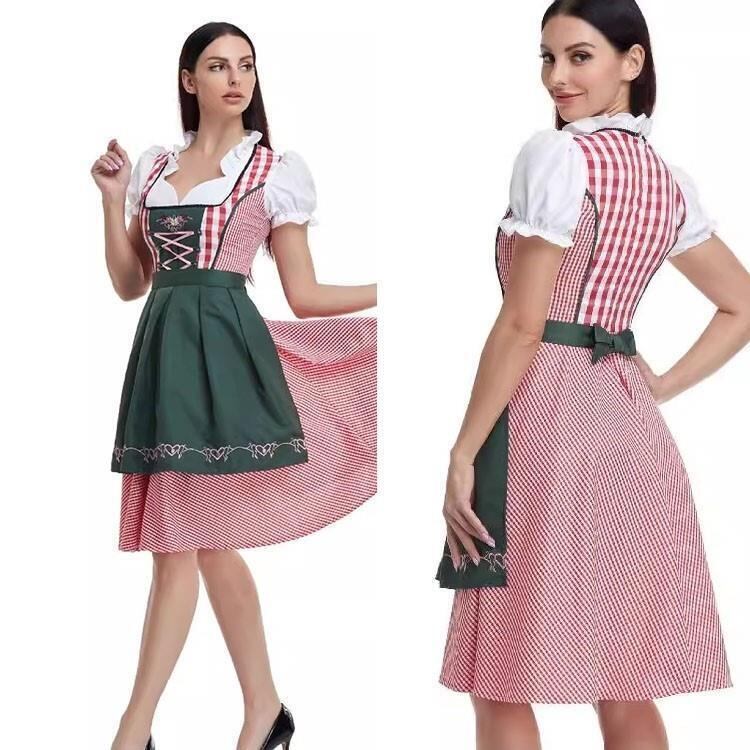 レディース ワンピース セットアップ 膝丈 ミディ 半袖 パフスリーブ Vネック フレア Aライン フリル バックリボン ハイウエスト レースアップ 異国風 かわいい 上品 おしゃれ エキゾチック ガーリー 個性的 エレガント ラブリー キュート カントリー ロマンティック 華やか チェック 格子柄 春 夏 秋 ハロウィン 祭り 文化祭 学園祭 フェス お揃い コスチューム 衣装 仮装 ドイツ ビール祭り オクトーバーフェスト S M L XL 2XL ブルー レッド グリーン ネイビー ブラック レッド