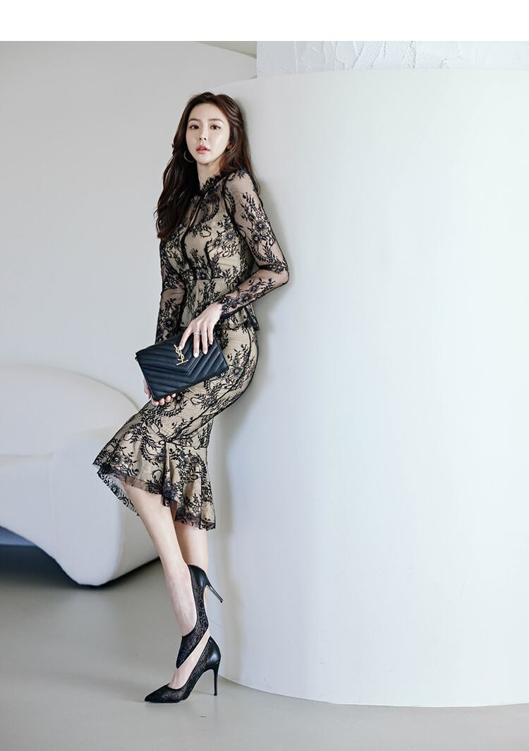 レディース スカート ジャケット セットアップ ドレス マーメイドスカート ロングスカート レーススカート 膝下 ミモレ 長袖 ハイネック セミフレア タイト スリム 細身 レース 刺繍 透け感 大人可愛い きれいめ おしゃれ こなれ感 クール エレガント 主役級 色気 ボタニカル 総柄 春 夏 デート お出かけ パーティー イベント 休日 ショッピング コンサート クラブ コーデ 楽ちん 美脚 脚長 モテ スタイルアップ 肌見せ S M L XL 白 ホワイト 黒 ブラック ベーシックカラー 大人カラー