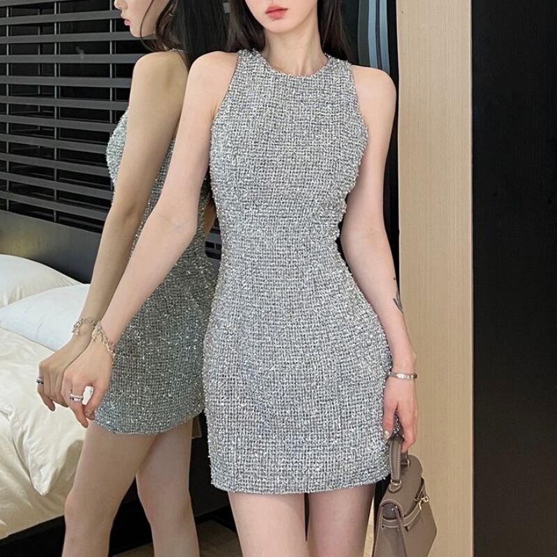 レディース ワンピース ドレス シースドレス ミニ ショート 袖なし ノースリーブ ラウンドネック クルーネック タイト スリム 細身 スマート スキニー ボディコンシャス スレンダー スパンコール かわいい シンプル カジュアル 上品 おしゃれ かっこいい エキゾチック 個性的 クール エレガント 主役級 存在感 キュート 都会的 ラグジュアリー アメリカン アクティブ ワイルド セクシー 色気 シック 華やか ゴージャス 可愛い 春 夏 パーティー クラブ キャバ ラウンジ XL 2XL シルバー