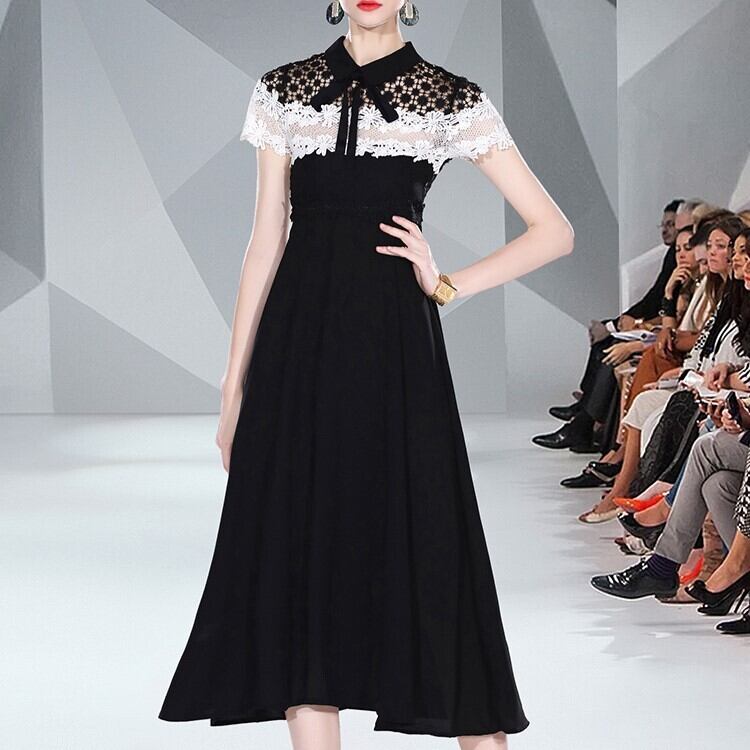 レディース ワンピース ロングスカート 膝下 ミモレ ロング ミディ 半袖 襟付き フレア Aライン レース 刺繍 リボン ファスナー ハイウエスト 透け感 かわいい 大人可愛い きれいめ シンプル 上品 おしゃれ こなれ感 クール エレガント キュート ナチュラル セクシー 色気 無地 夏 秋 二次会 デート お出かけ パーティー イベント 休日 ホテル ショッピング 発表会 コンサート コーデ 楽ちん 脚長 モテ 清楚 S M L XL 2XL 白 ホワイト 黒 ブラック ベーシックカラー 大人カラー