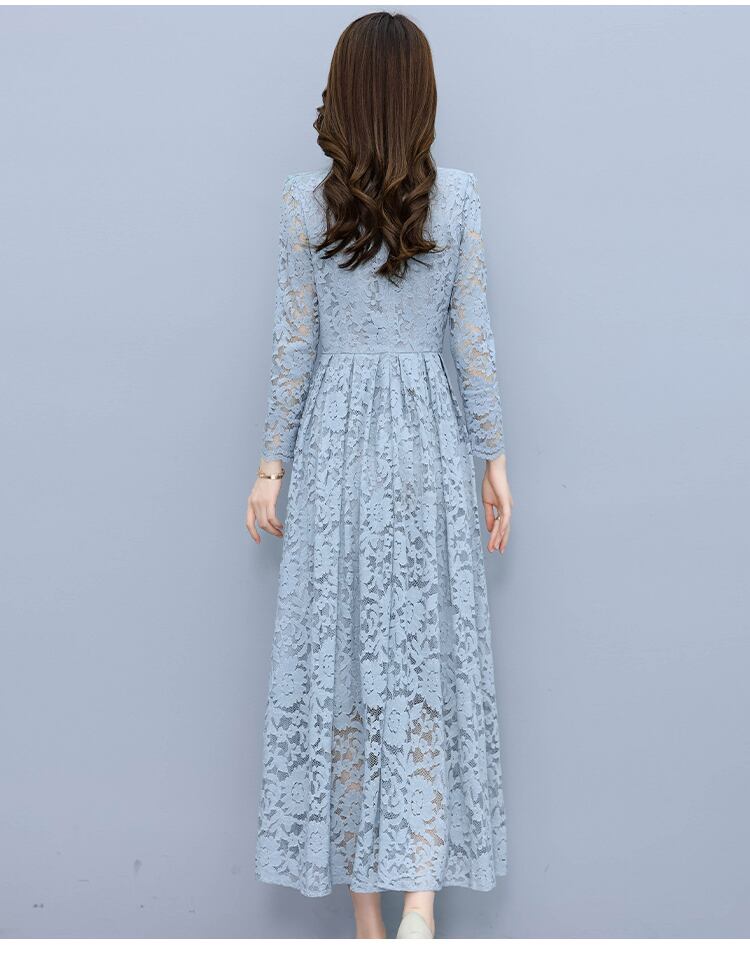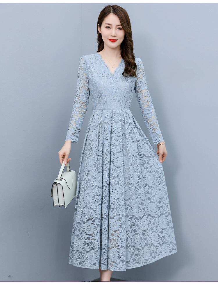 女性らしい優雅なレースデザインが特徴なワンピースです。膝下まである長さがエレガントな印象を与えます。長袖のVネックスタイルとセミフレアのシルエットは、体型を美しくカバーし、いつでもスタイルアップを実現します。ハイウエストデザインが脚長効果も生み出し、どなたでも着こなせる一着です!カジュアルなデイリーコーデはもちろん、パーティーや旅行、女子会など、様々なシーンで活躍します。