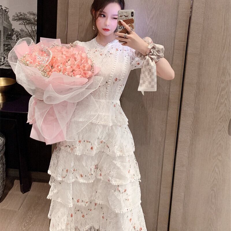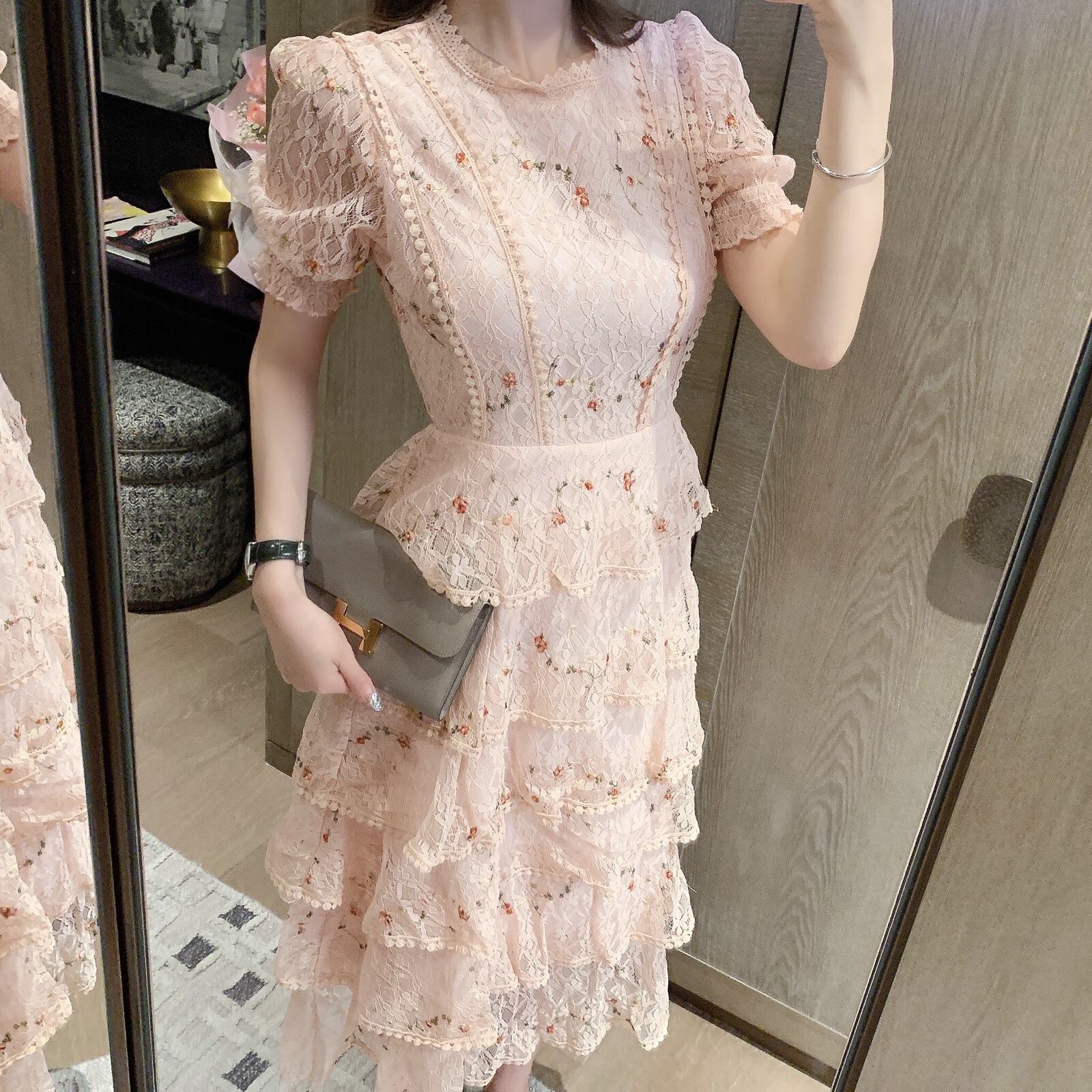 レディース ワンピース ドレス ミモレ ロング 半袖 パフスリーブ クルーネック フレア Aライン ティアード フェミニン フィット&フレア レース ハイウエスト 透け感 シースルー 総レース シアー かわいい きれいめ 上品 おしゃれ ガーリー エレガント 抜け感 ラブリー キュート ロリータ プリンセス ロマンティック ノーブル 爽やか 華やか 可愛い 花柄 フラワー 春 夏 同窓会 デート お出かけ パーティー 女子会 ガーデン 普段使い 清楚 スタイルアップ S M L XL ホワイト ピンク