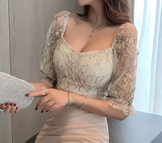 透け感のあるレースが大人のエレガントさをプラスし、都会的でラグジュアリーな印象を与えます。