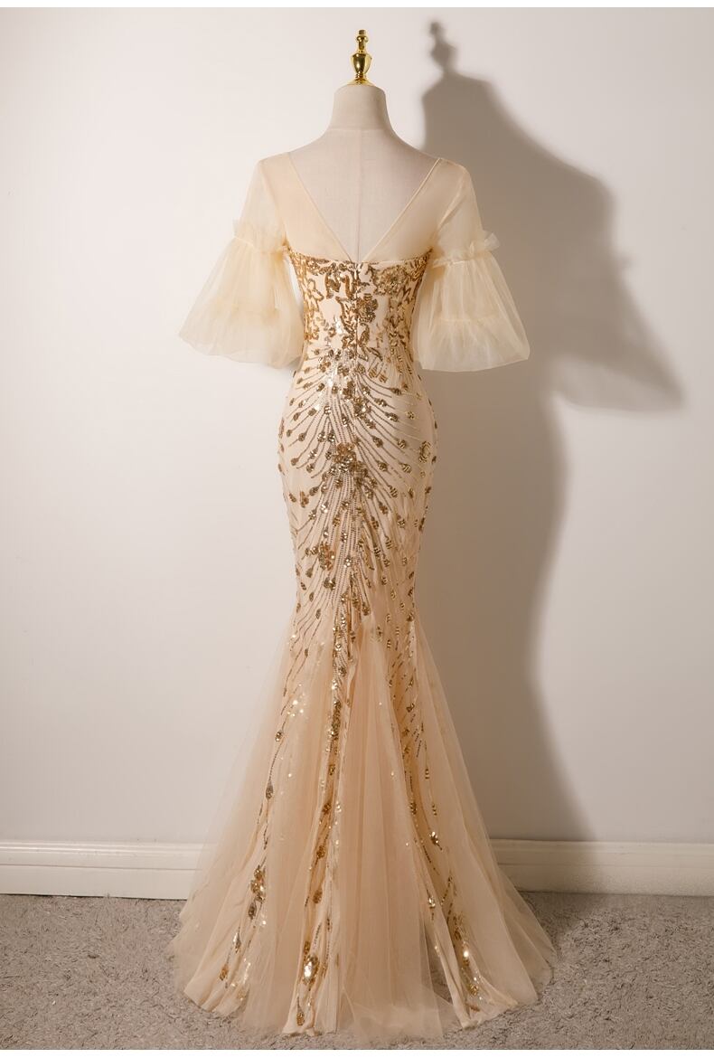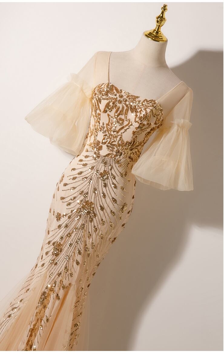 レディース ドレス イブニングドレス ロング マキシ フルレングス 半袖 5分袖 ボリューム袖 スクエアネック タイト スリム 細身 マーメイド スレンダー アワーグラスライン Vバック チュール フリル 透け感 シースルー スパンコール シアー 大人可愛い 上品 おしゃれ エキゾチック クール エレガント 主役級 存在感 ラグジュアリー セクシー 色気 シック ノーブル 爽やか 華やか ゴージャス 春 夏 花嫁 お色直し パーティー 高見え 格上げ S M L XL 2XL ブラック アプリコット