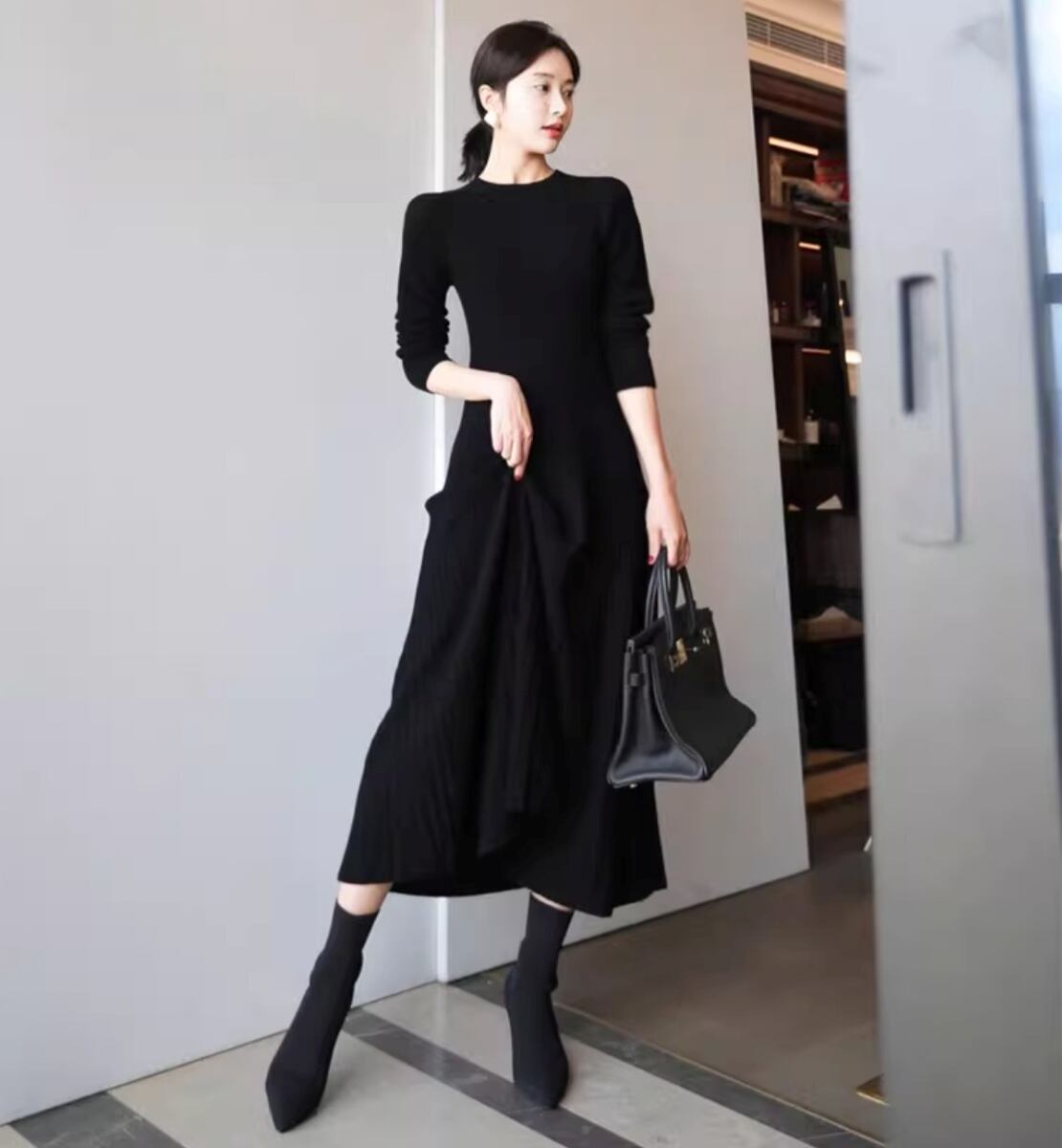 レディース ワンピース ドレス ニットワンピ セータードレス ミモレ ロング 長袖 クルーネック フレア スリム Aライン スレンダー コンサバ リブニット ストレッチ 伸縮性 大人可愛い きれいめ シンプル 上品 おしゃれ こなれ感 エレガント 抜け感 かっちり 都会的 ラグジュアリー ベーシック ナチュラル シック ノーブル 無地 秋 冬 デート お出かけ レストラン 休日 ショッピング 楽ちん 普段使い モテ 清楚 トレンド 定番 高見え 格上げ XS S M L XL ブラック キャメル