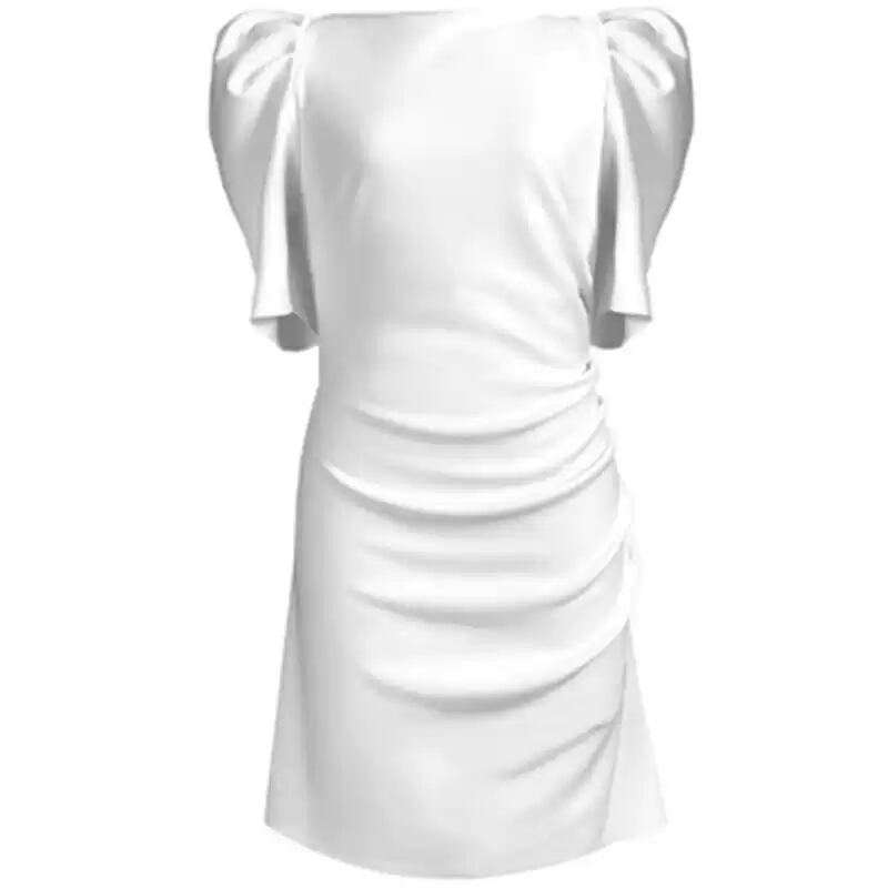 レディース ワンピース カクテルドレス ドレス ミニ ショート 半袖 パワーショルダー サブリナネック セミフレア スリム 細身 Aライン ドレープ スマート スレンダー Xライン タック 大人可愛い きれいめ シンプル 上品 おしゃれ こなれ感 エレガント モダン かっちり 都会的 ラグジュアリー シック ノーブル 爽やか ドレッシー 清潔感 クリーン 無地 春 夏 二次会 同窓会 お呼ばれ デート お出かけ パーティー ホテル 普段使い 清楚 トレンド 高見え 格上げ S M L XL 白 ホワイト