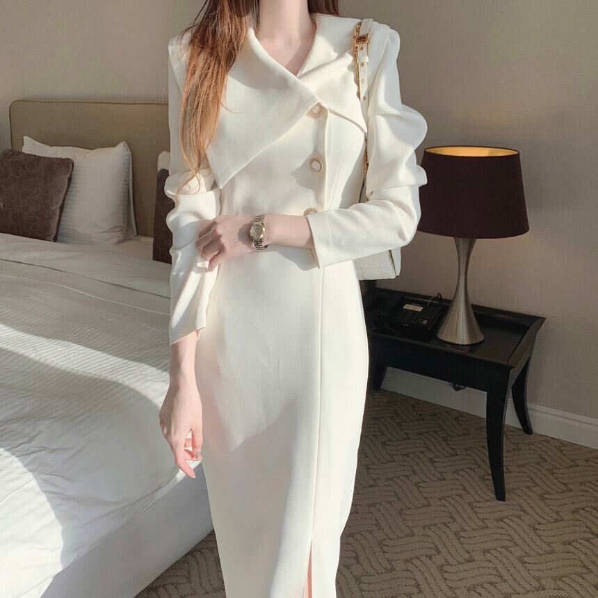 レディース ワンピース ドレス 膝下 ミモレ 7分袖 Vネック 角襟 タイト スリム 細身 ウエストマーク スリット サイドスリット ハイウエスト ボタン かわいい 大人可愛い きれいめ シンプル 上品 おしゃれ かっこいい こなれ感 エレガント 存在感 ナチュラル セクシー 色気 可愛い 無地 秋 冬 デート パーティー イベント ホテル 発表会 コンサート コーデ 楽ちん 美脚 脚長 モテ 清楚 スタイルアップ コスチューム フリーサイズ 白 ホワイト 黒 ブラック ベーシックカラー 大人カラー