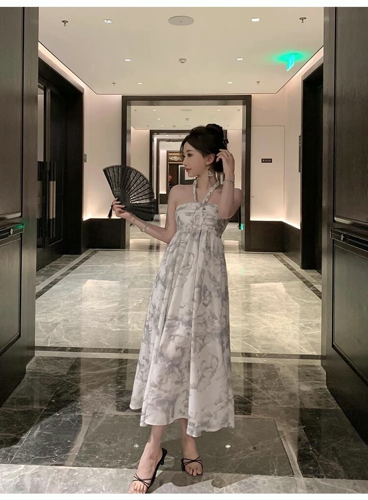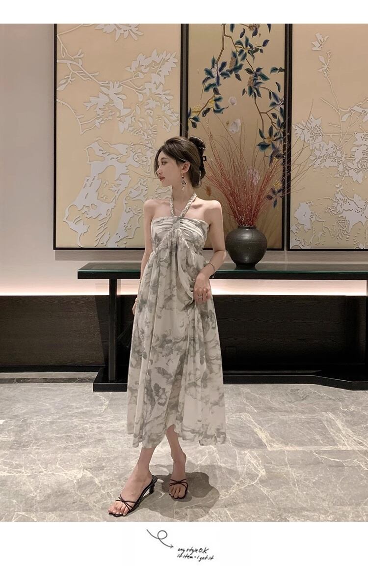 袖なしのホルターネックデザインが特徴で、上品さを兼ね備えています。Aラインが体型を美しくカバーし、夏のデートやリゾート旅行、ビーチシーンで大活躍すること間違いなしです!