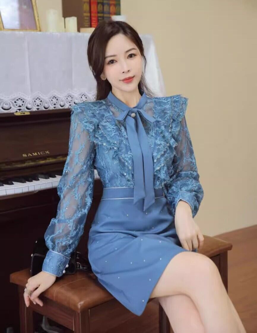 レディース ワンピース ミニ 膝上 長袖 パフスリーブ ラメ感 りぼんタイ フリル襟 切り替え フェミニン Xライン レース ウエストマーク ハイウエスト 透け感 シースルー 飾りボタン ビジュー 異素材ミックス シアー かわいい 大人可愛い シンプル 上品 存在感 抜け感 ラグジュアリー クラシカル ロマンティック ボタニカル ドット柄 春 夏 演奏会 お呼ばれ デート お出かけ イベント パーティー ホテル 発表会 脚長 モテ スタイルアップ S M L XL 2XL 大きいサイズ ブルー くすみ
